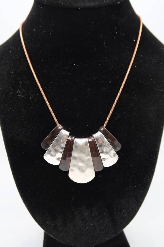 Vtg Multi Tonal Black Silver Copper Bib Princess Length Statement Necklace
