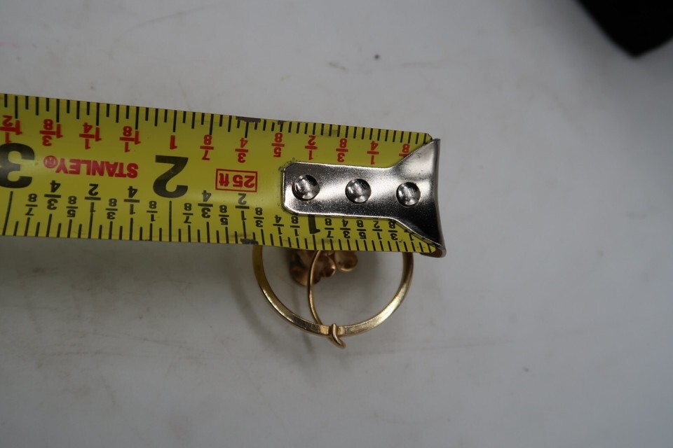 Vtg Gold Tone Circle Brooch with Flower Center & Metal Bead Accent