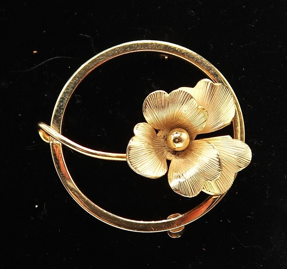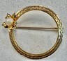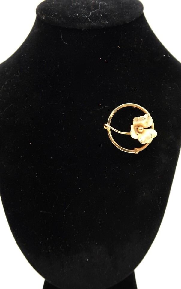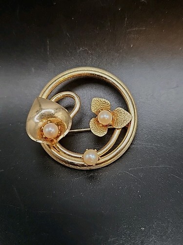 Vtg Gold Tone Circle Brooch with Flower and similar items