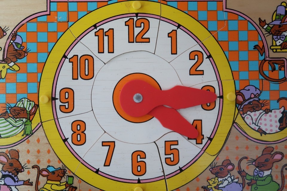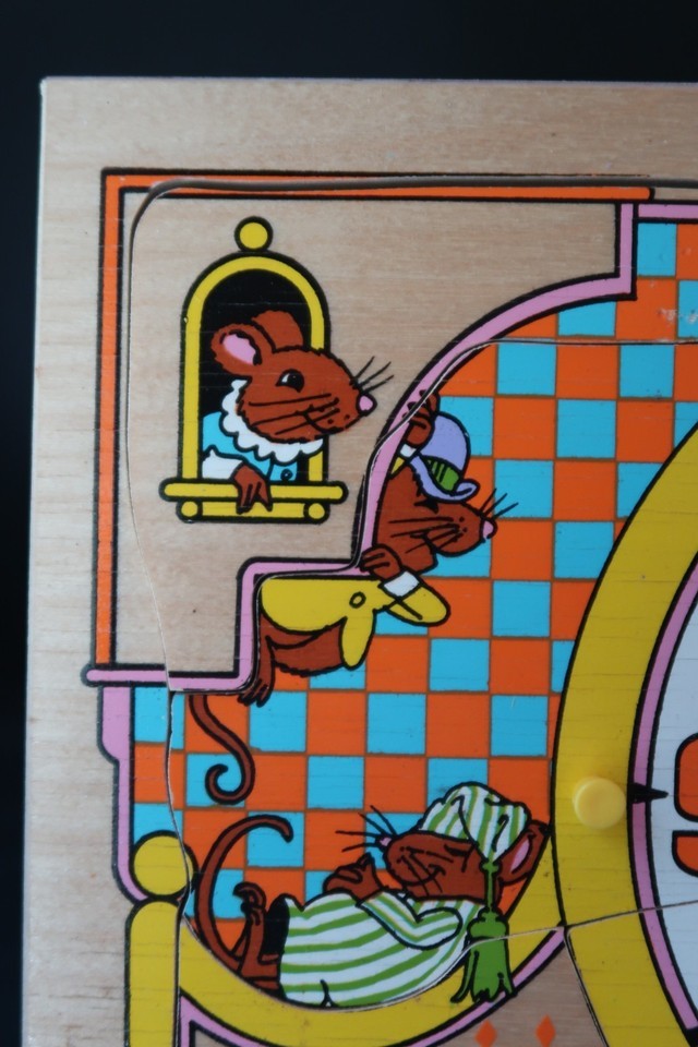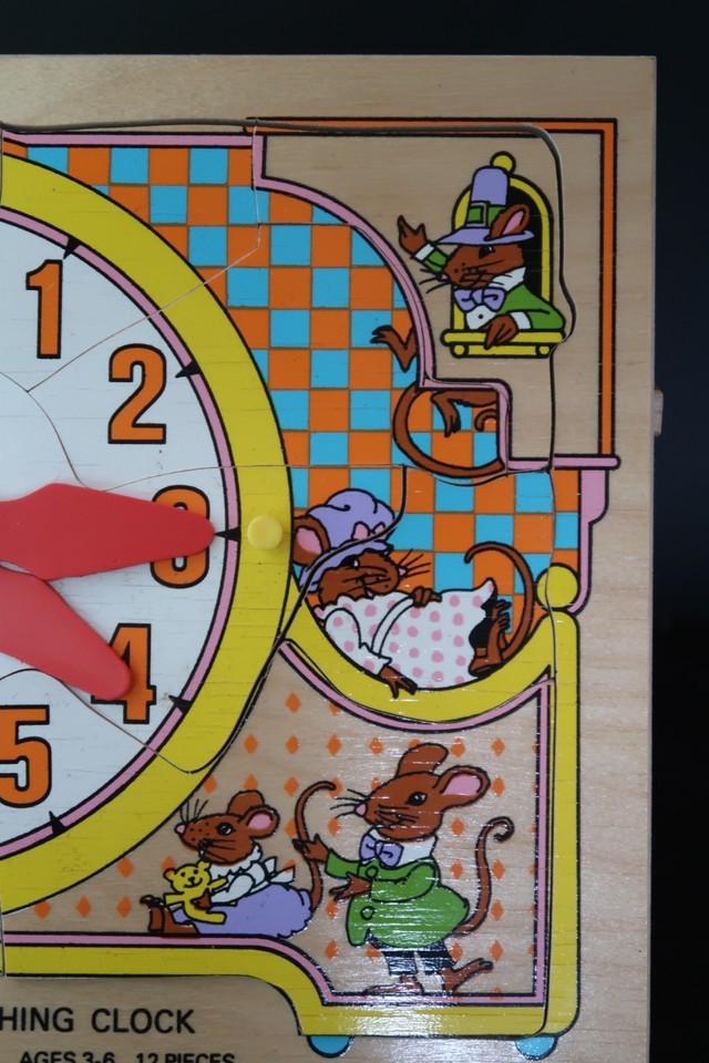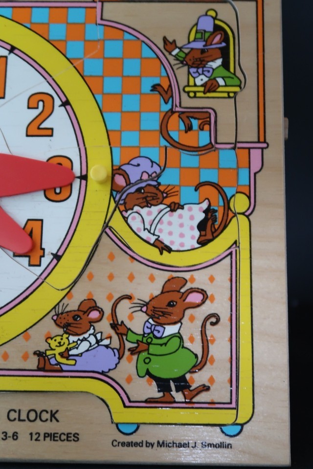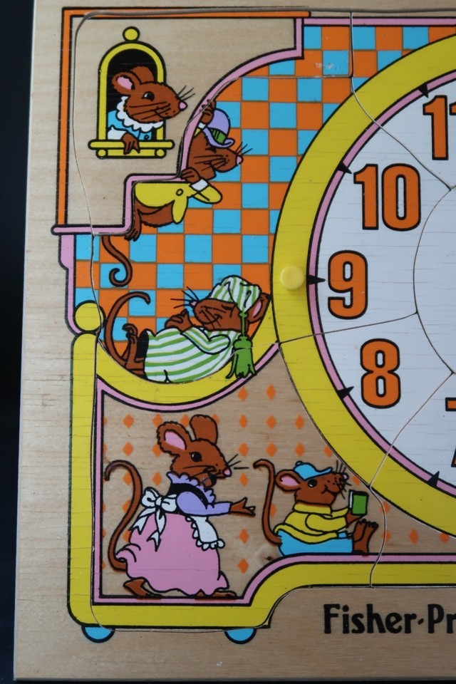 Vtg '80s Fisher Price Wooden Teaching Clock Puzzle 12 Pieces Educational Early