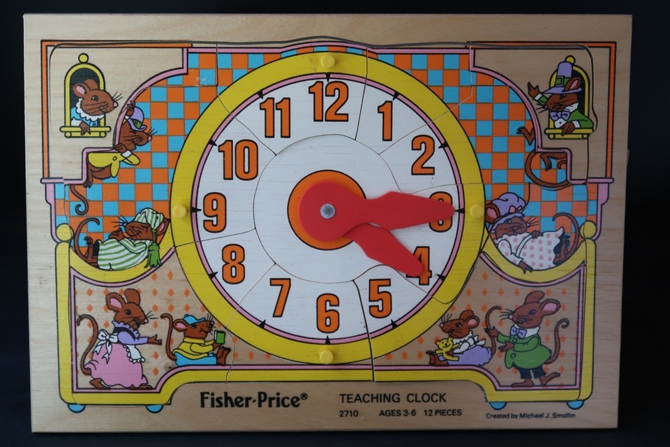 Vtg '80s Fisher Price Wooden Teaching Clock and 46 similar items