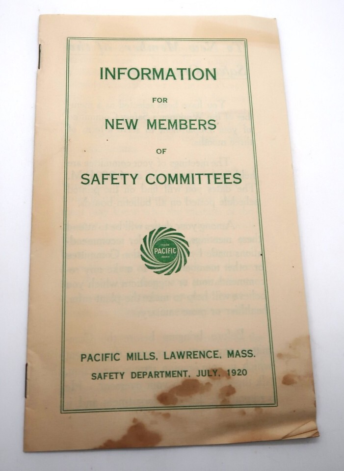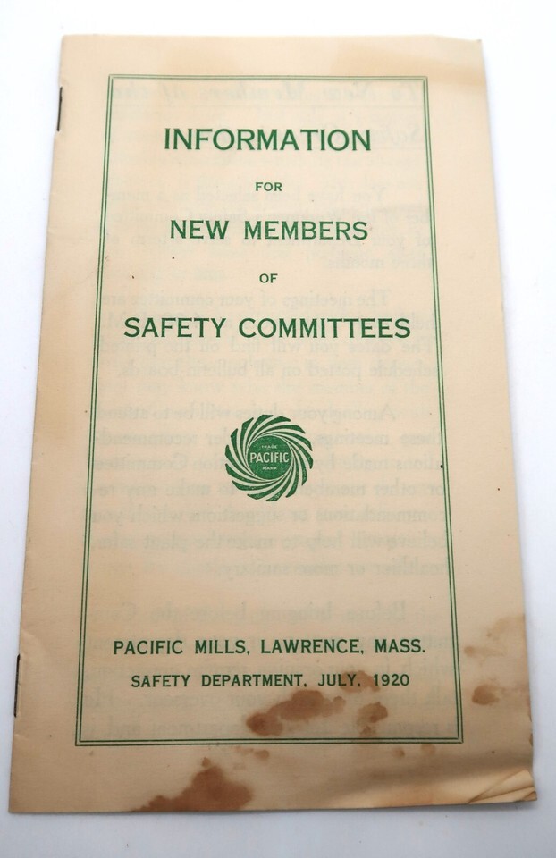 Vtg Pacific Mills Safety Committee Information Ephemera 1920 Interesting Topic