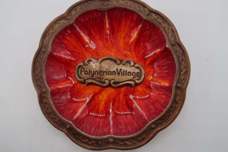 VTG MCM Treasure Craft Red Flame Glaze Polonesian Village Souvenir Dish Ashtray