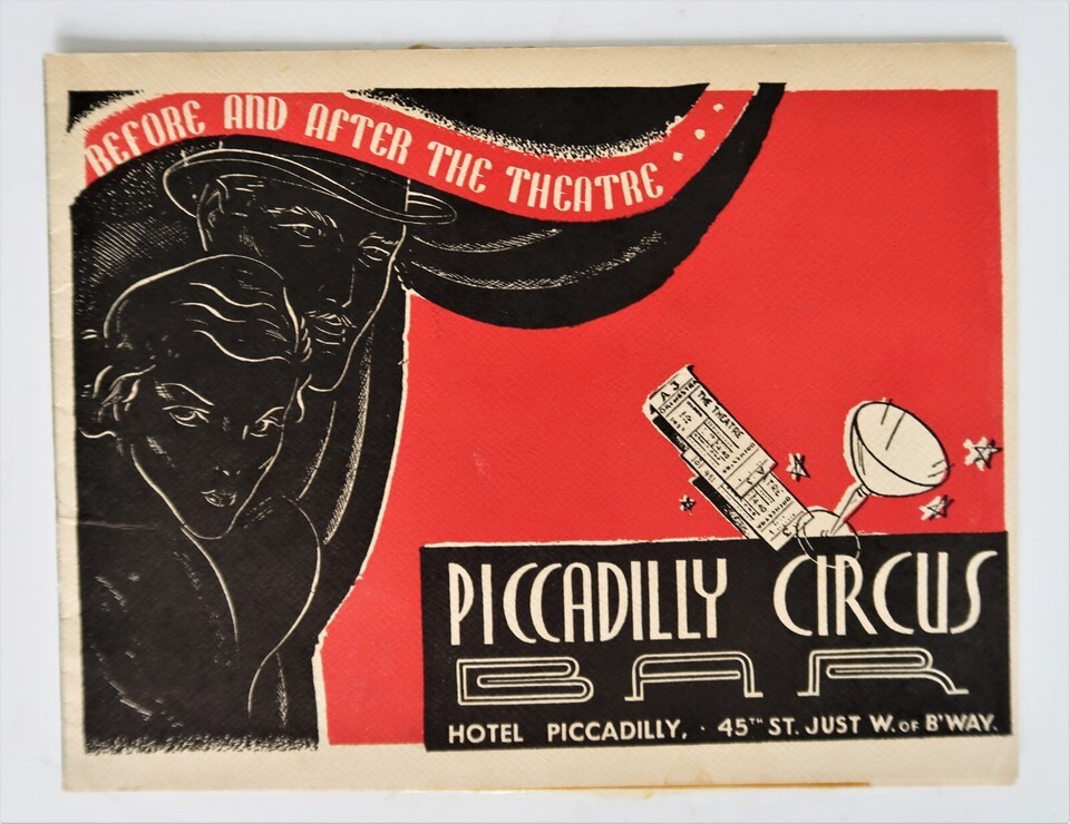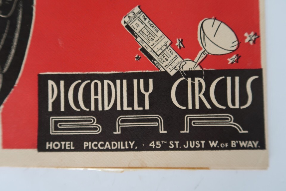 Vtg Hotel Piccadilly Circus Bar NYC Photo & Advertising Ephemera 1945