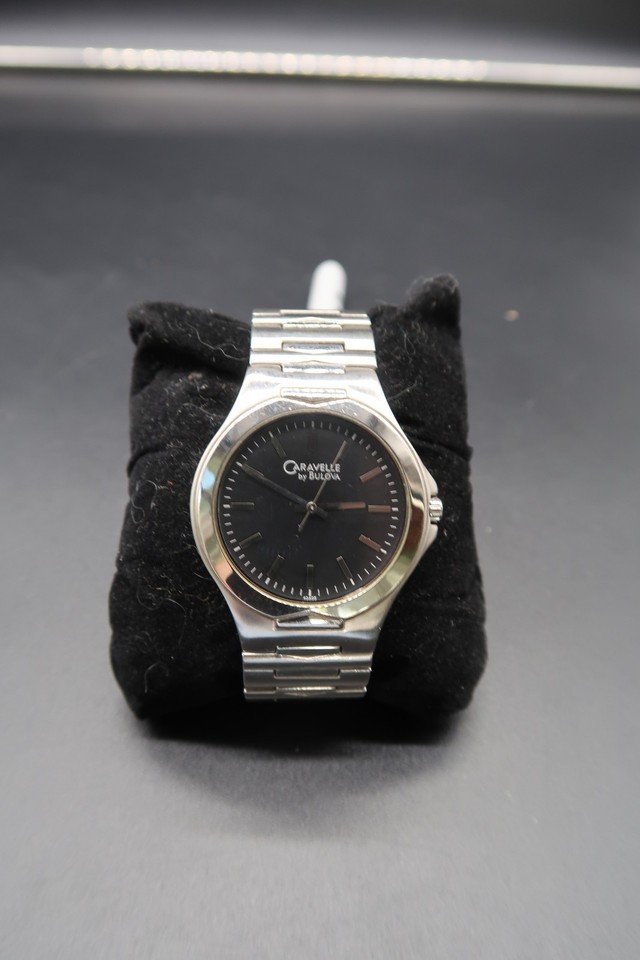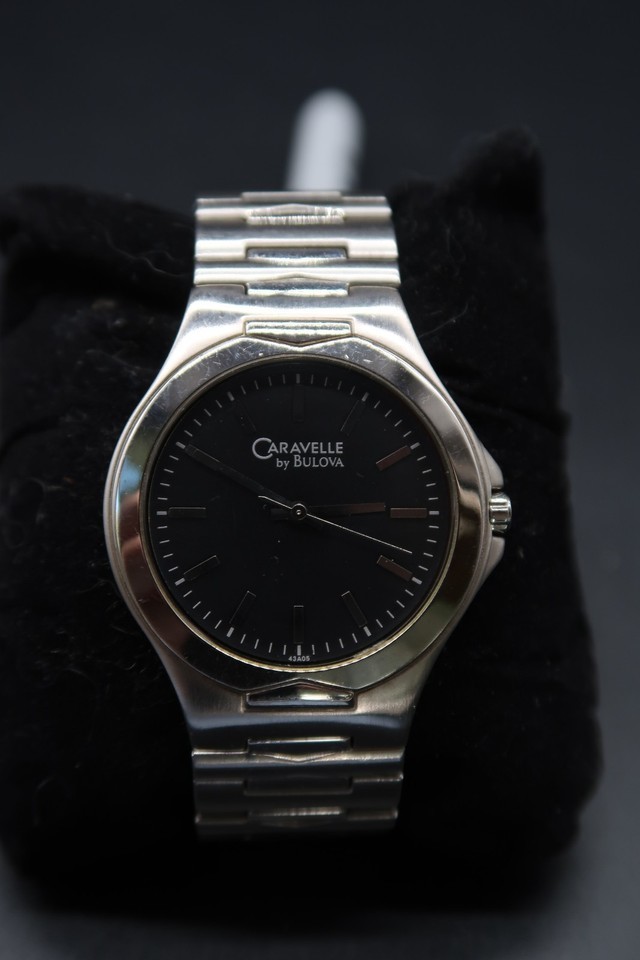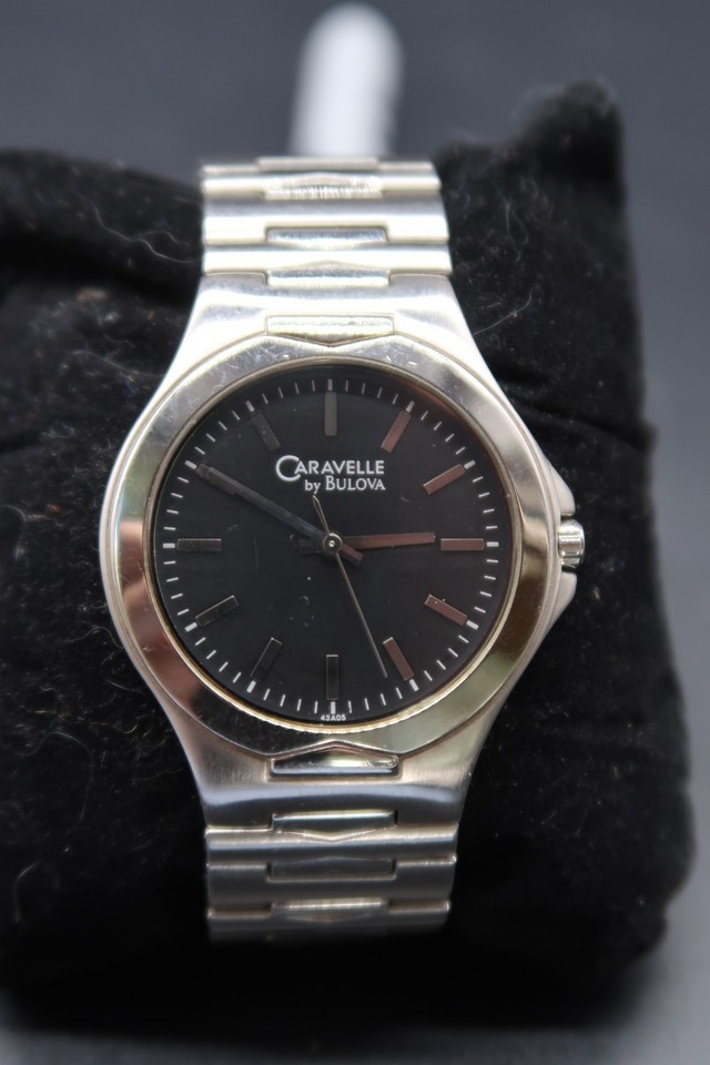 Caravelle Bulova Men's Stainless Steel Band 43A05 New Battery Black Dial Works