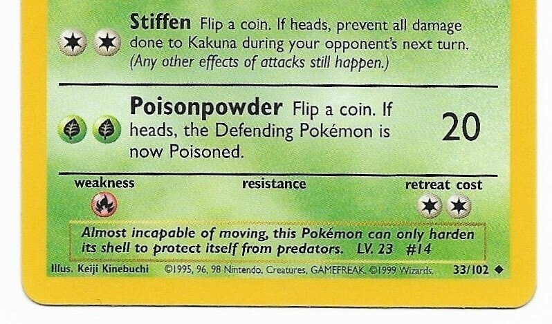 1999 WOTC Pokemon Game Base Set 33/102 Kakuna Non-Holo MINT Basic Stage 1