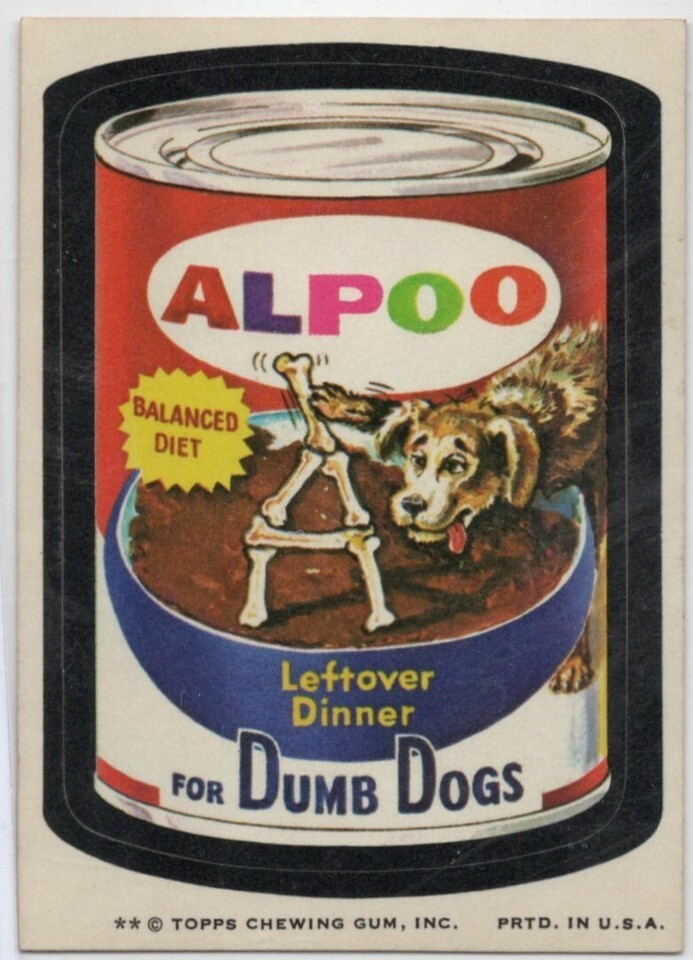 1974 Wacky Packages Alpoo For Dumb Dogs Series 7 Spoof of Alpo Sticker Card