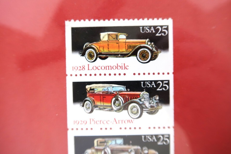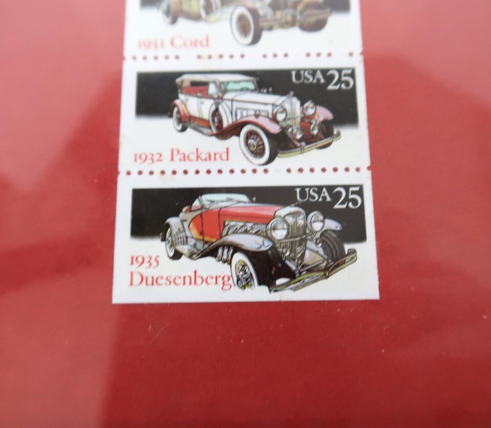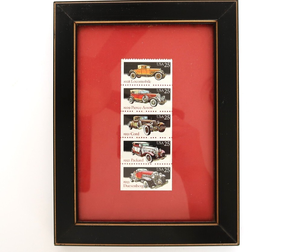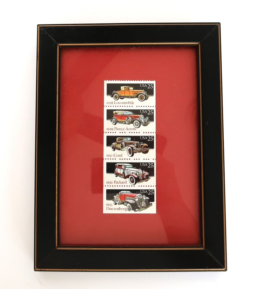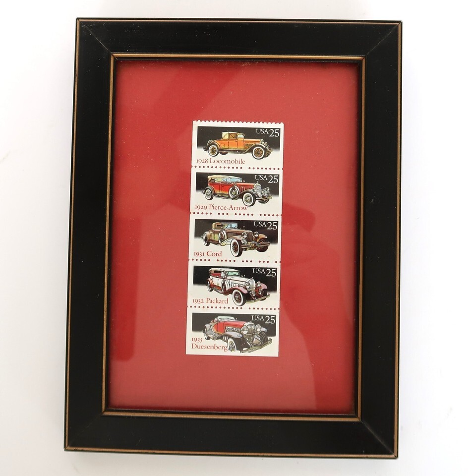 Vtg 5 Stamps Packard Cord Duesenberg Pierce Arrow Locomobile Unused Framed 1988