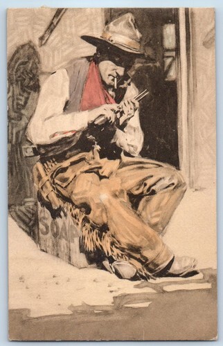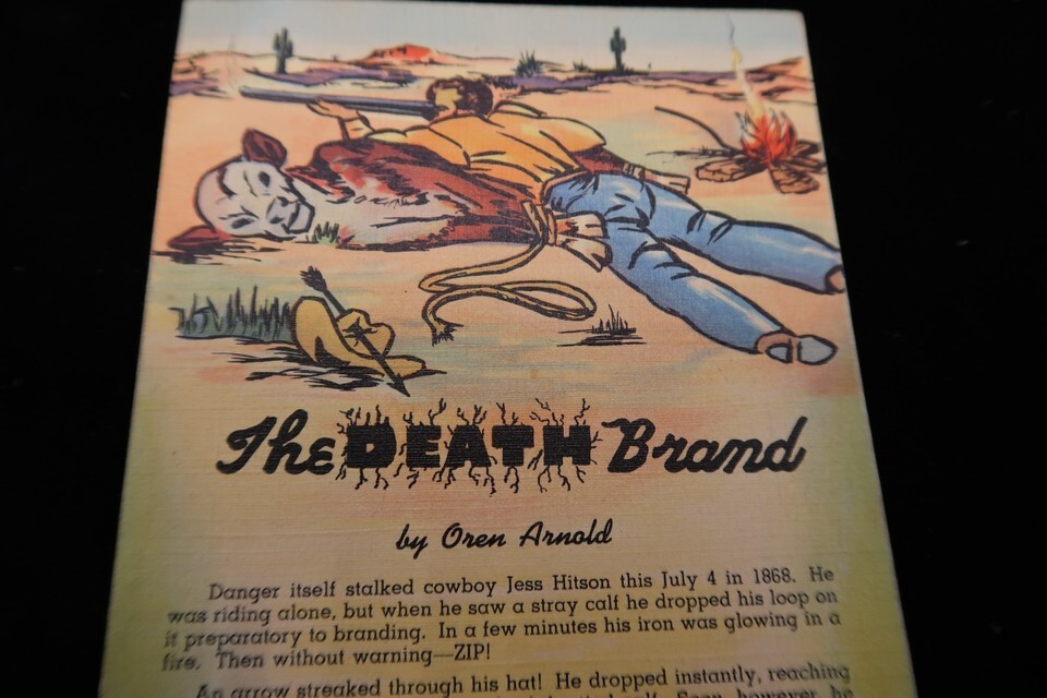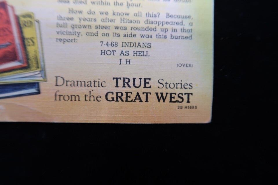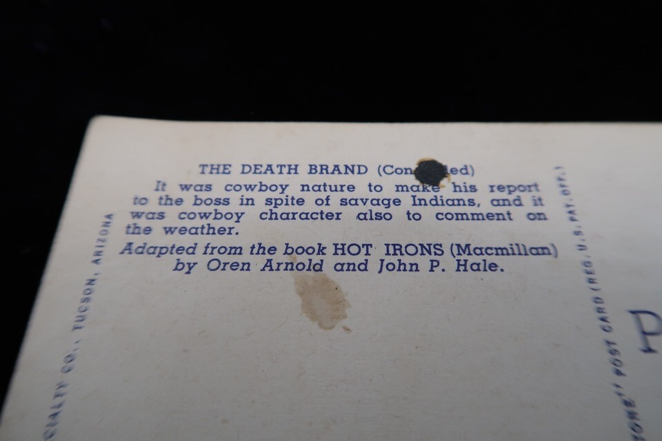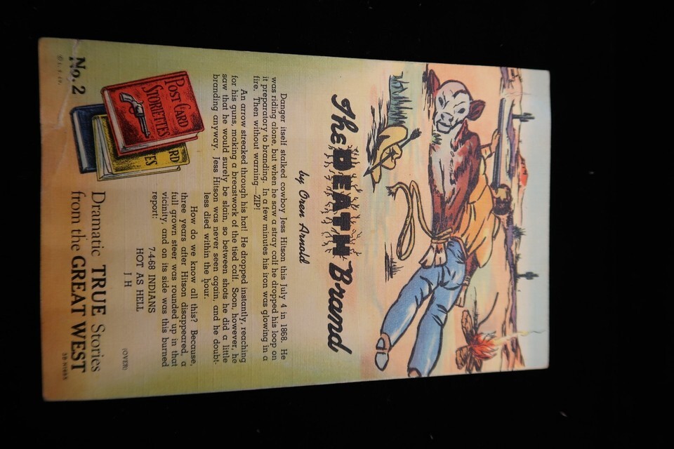 VTG Linen Postcard #2 Death Brand Oren Arnold Dramatic True Stories Wild West