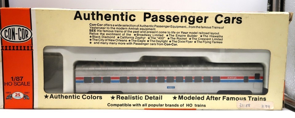 Vtg CON-COR HO Scale Amtrak 72' Pullman Authentic Passenger Sleeper Car Orig Box