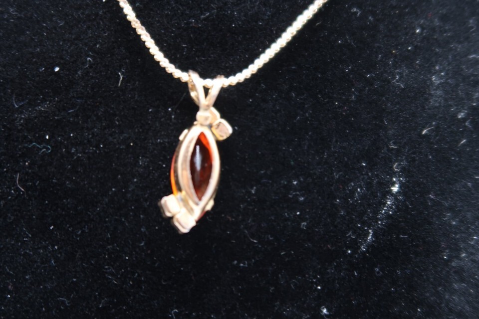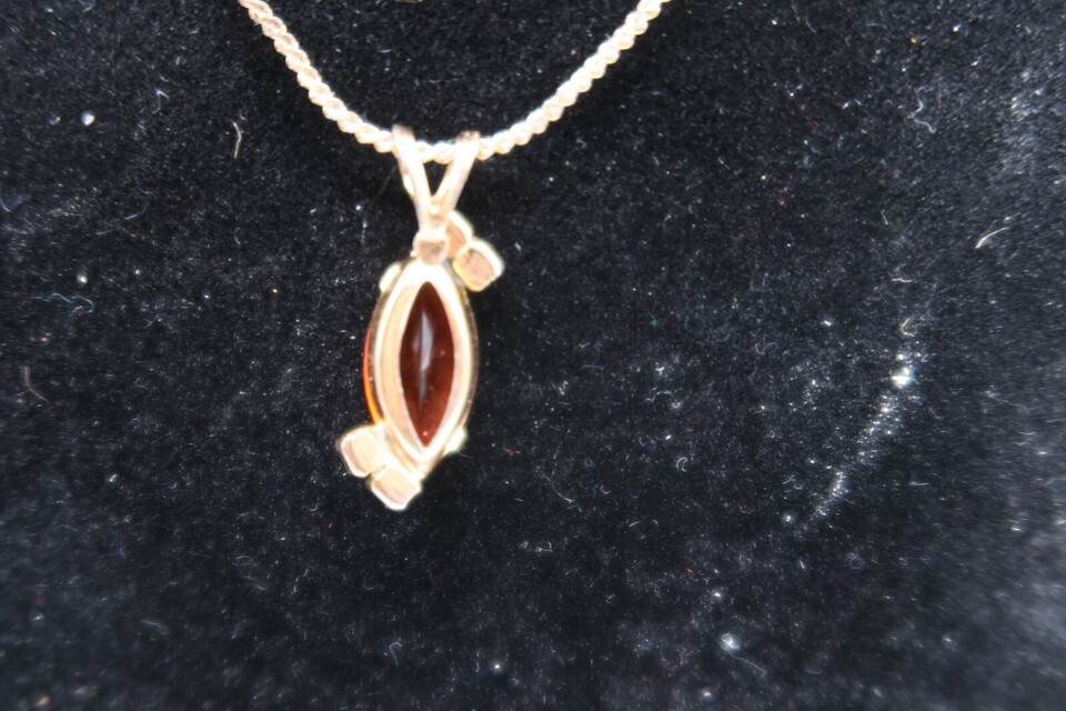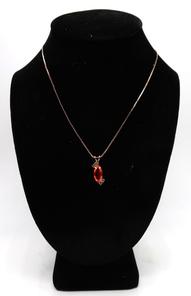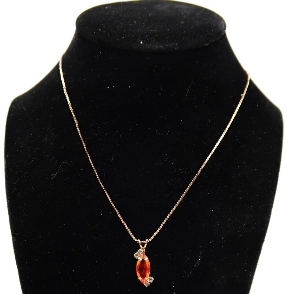 Vtg Marquise Cut Faux Fire Opal or Orange Sapphire Necklace W/ Rhinestone Accent