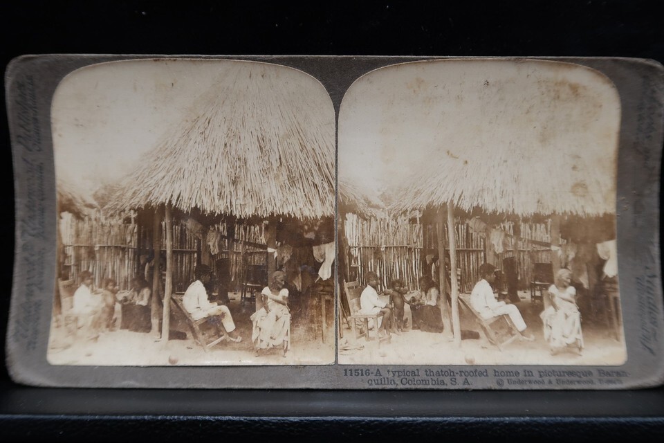 Antique Underwood Stereoview Thatch Roof Home Baranquilla Colombia S.A