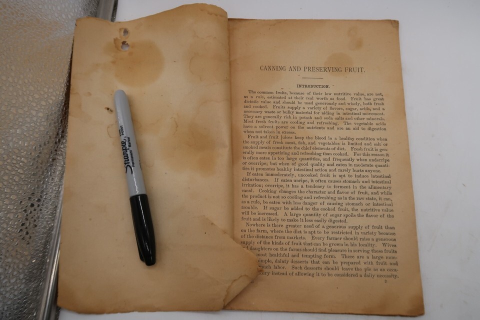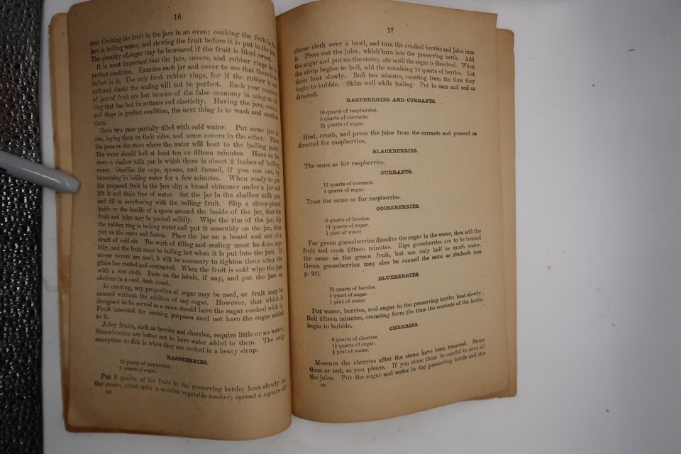 A rare well loved booklet from 1916 with water marks and discoloration. Significant wear. Lots of good instruction and recipes. Please carefully examine all pictures before purchasing. The pictures are an important part of the description, and usually include important measurements. Items are in good pre-owned condition unless otherwise noted.