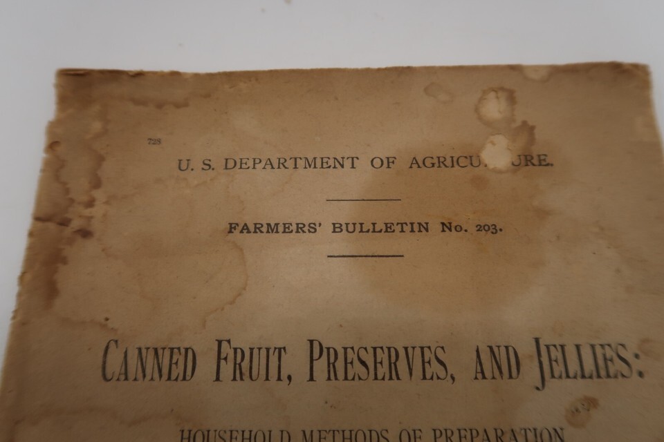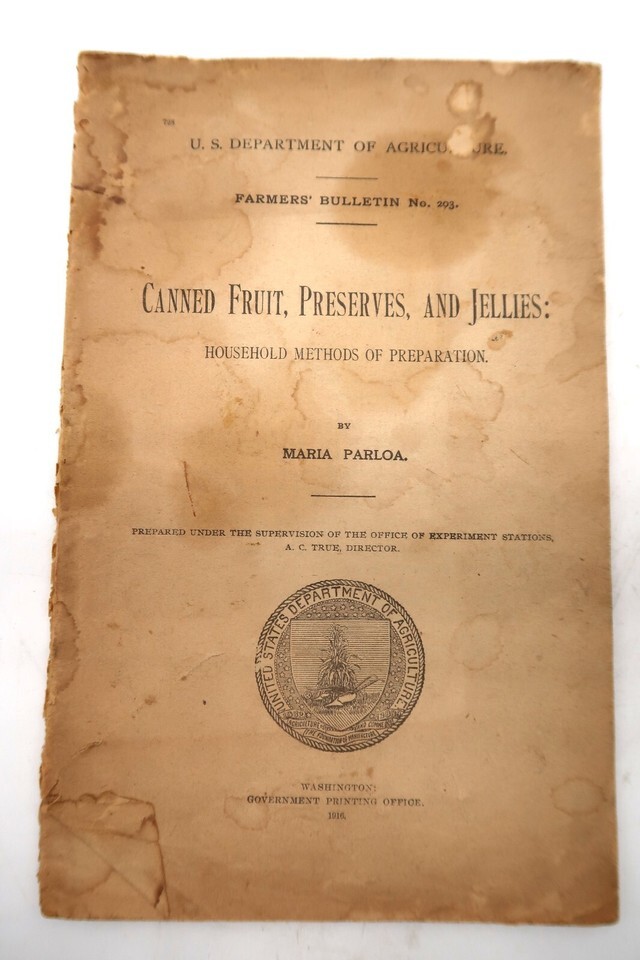 1916 Canned Fruit & Preserves Jellies Farmers Bulletin #203 US Dept Agriculture