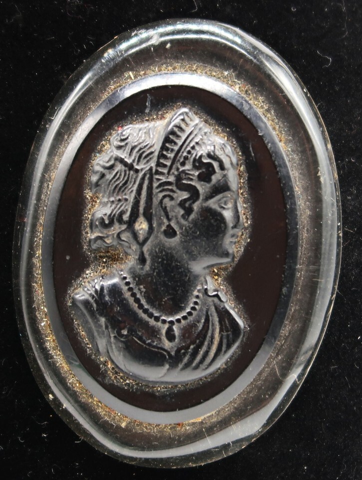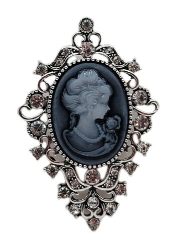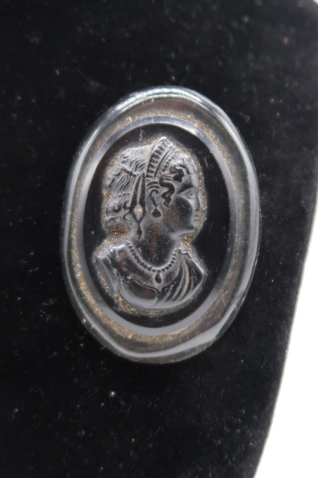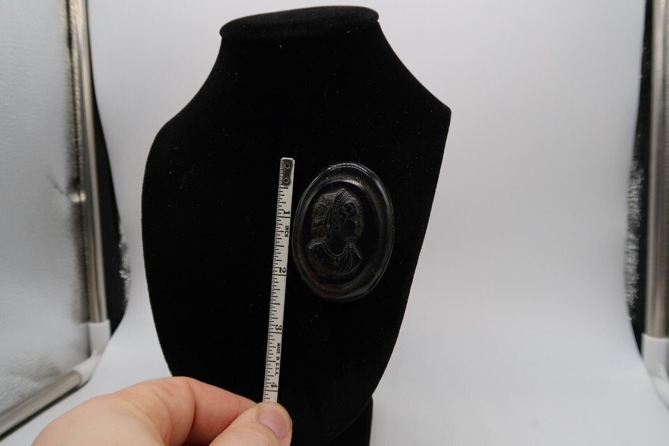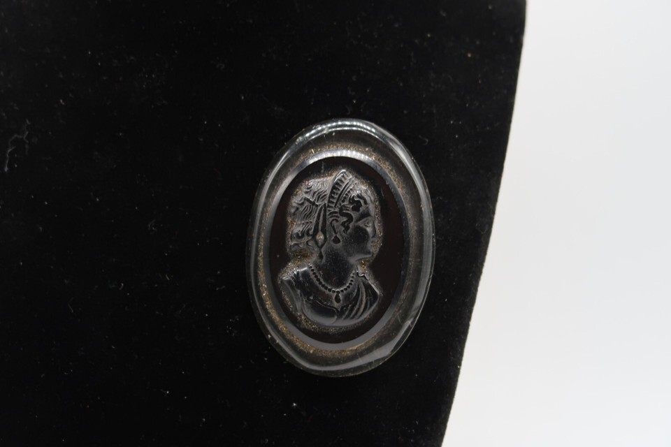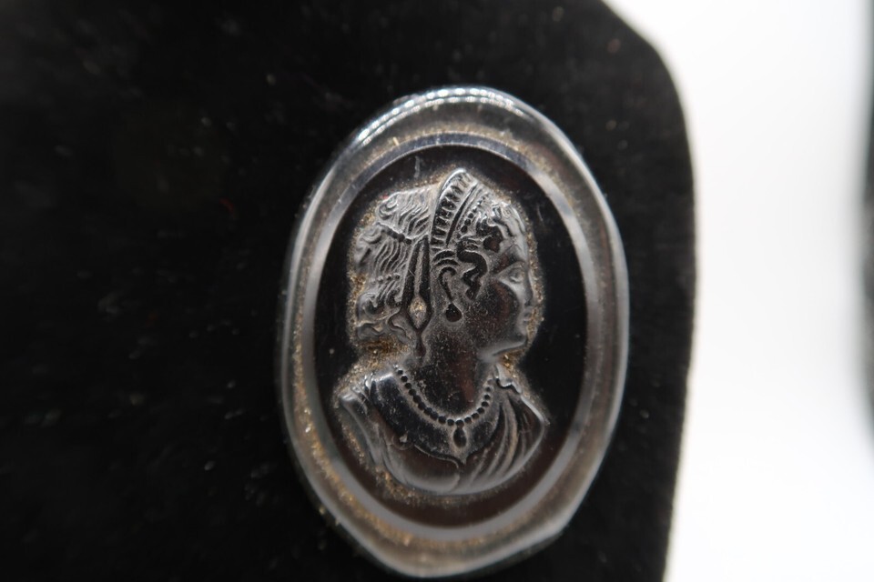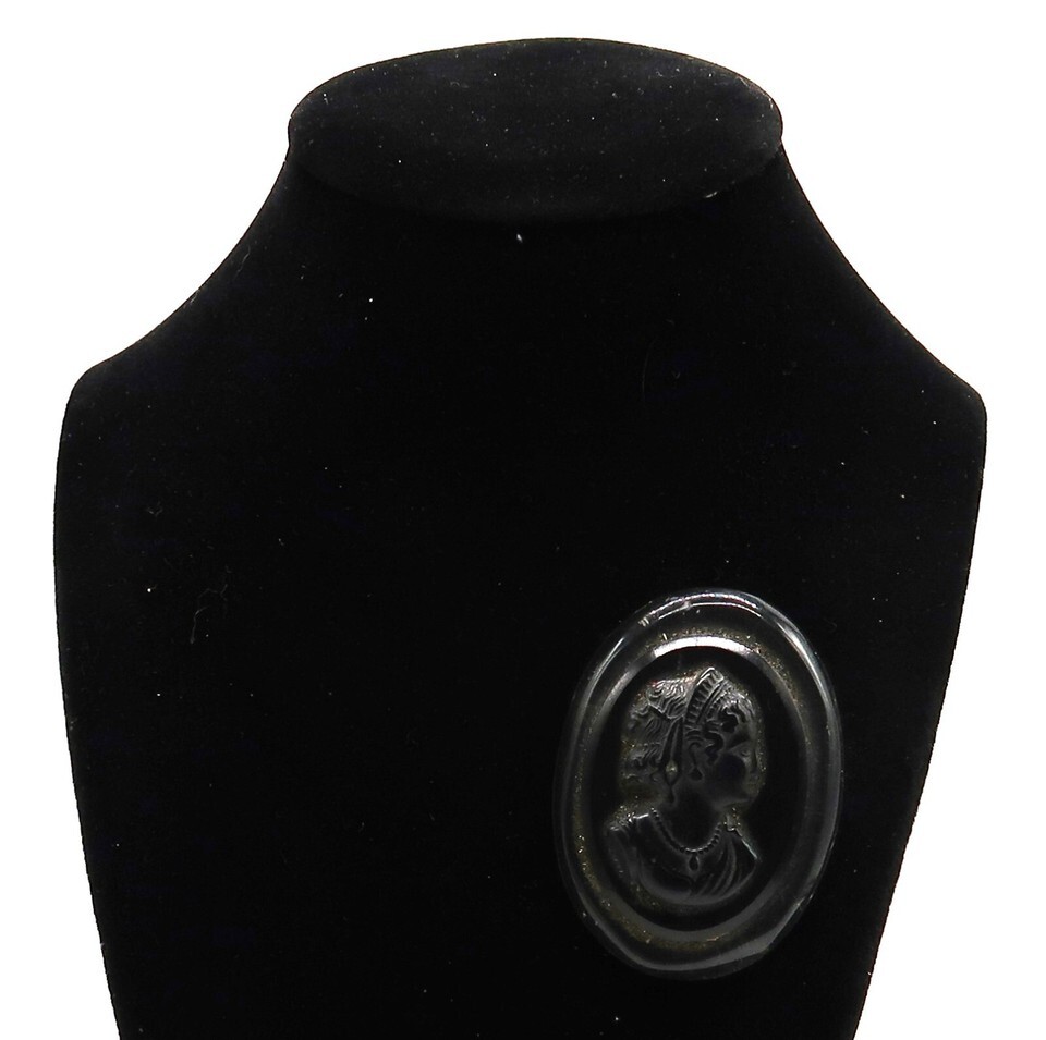 Vtg Black Celluloid & Silver Tone Metal Cameo Brooch Pin Sillouette