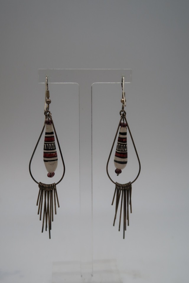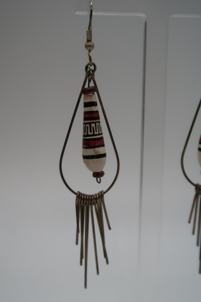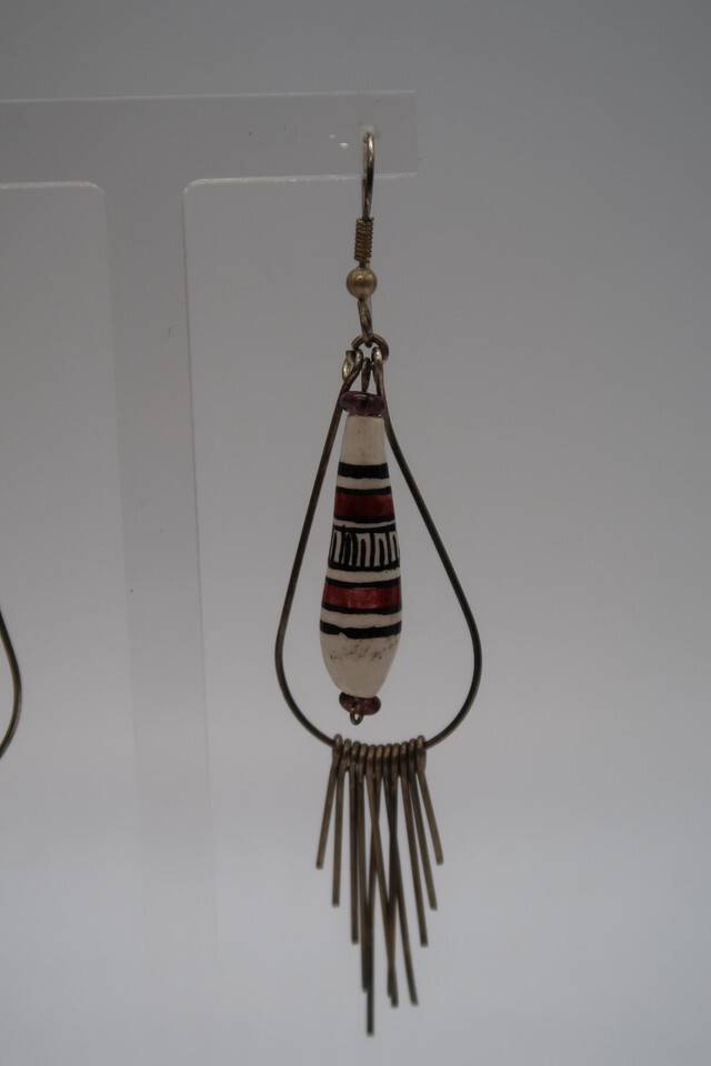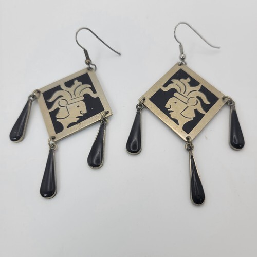 Vtg Hand Painted Dangle Chandelier Peruvian Style Earrings Beautiful