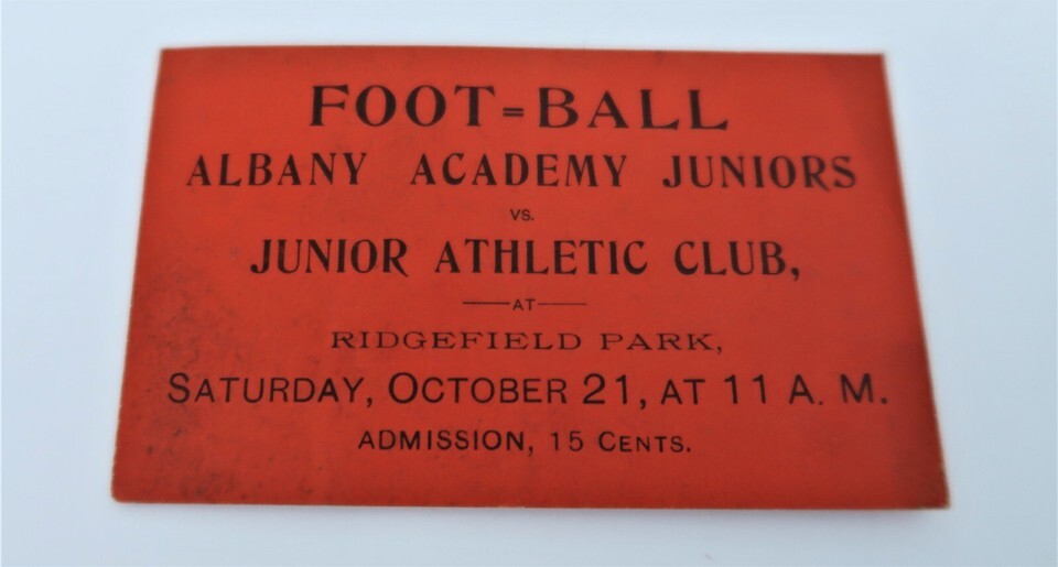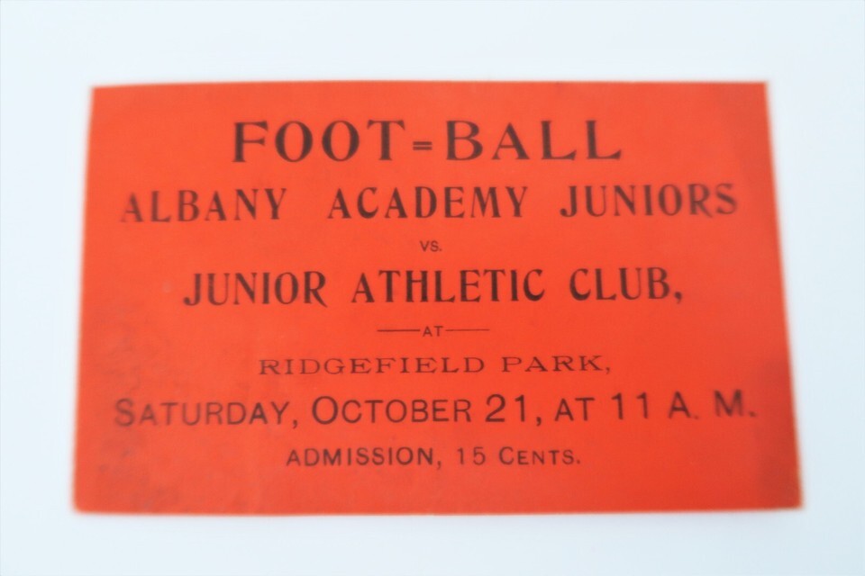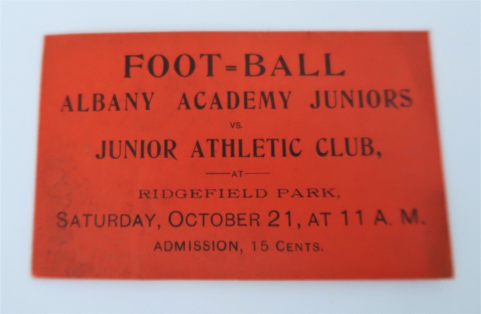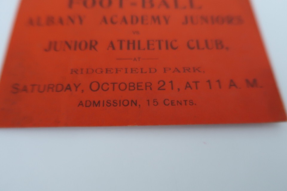 Antique Football Ticket Albany Academy Juniors v Junior Athletic Club NY 1910's