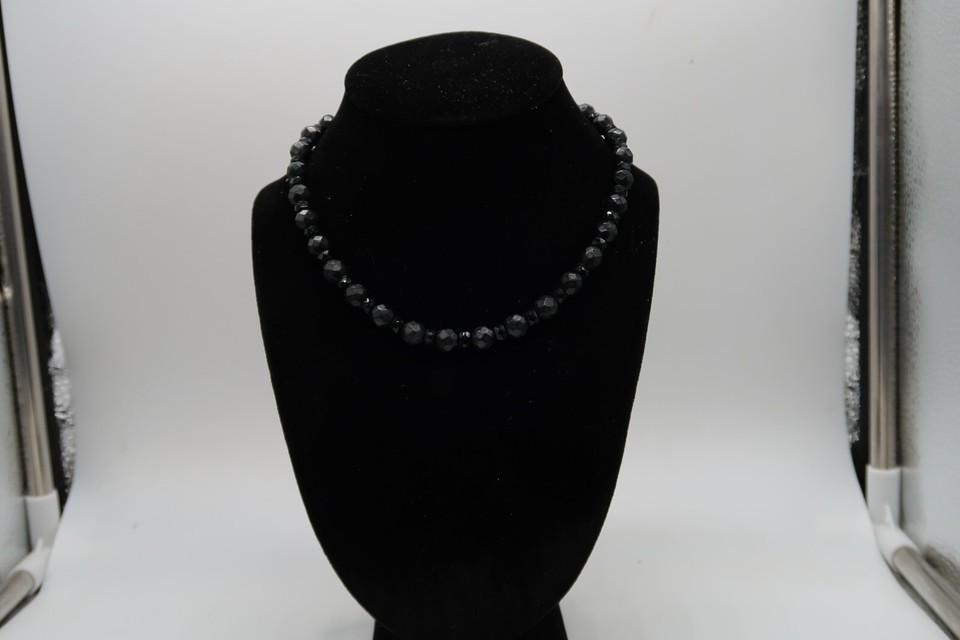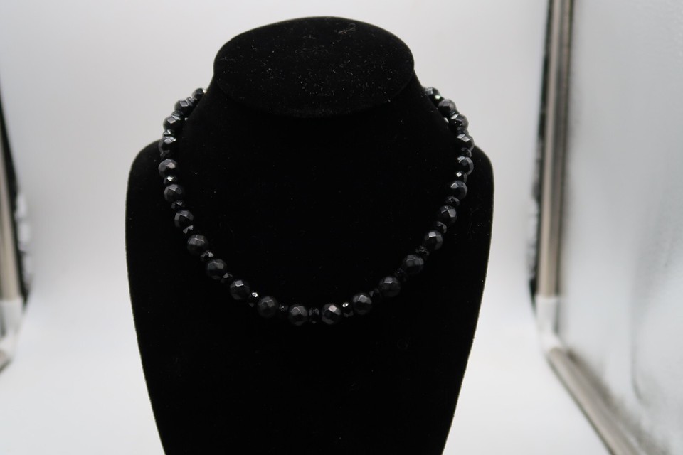 Vtg Princess Length Mourning Black Rhinestone Necklace Costume Statement Jewelry