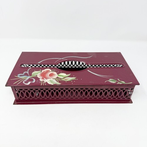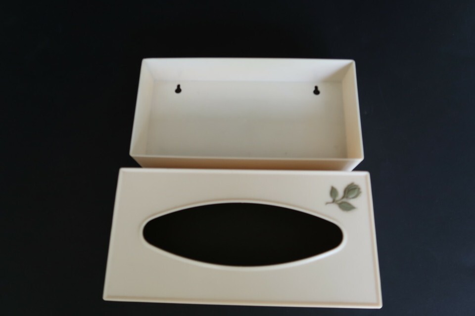 Vtg tissue box holder dispenser mid century plastic w/ flower acc.