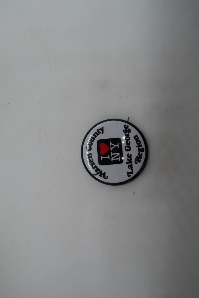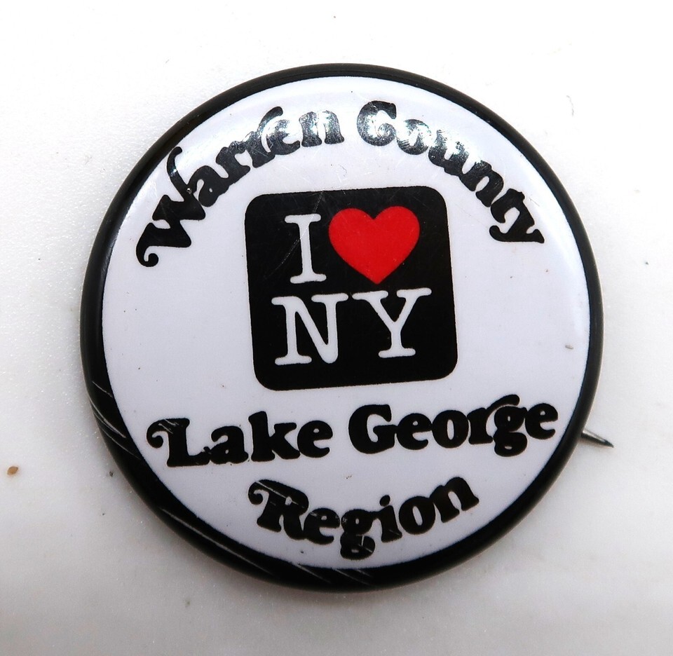 Warren County Lake George Region I LOVE NY Pinback Button Vintage Heart NY