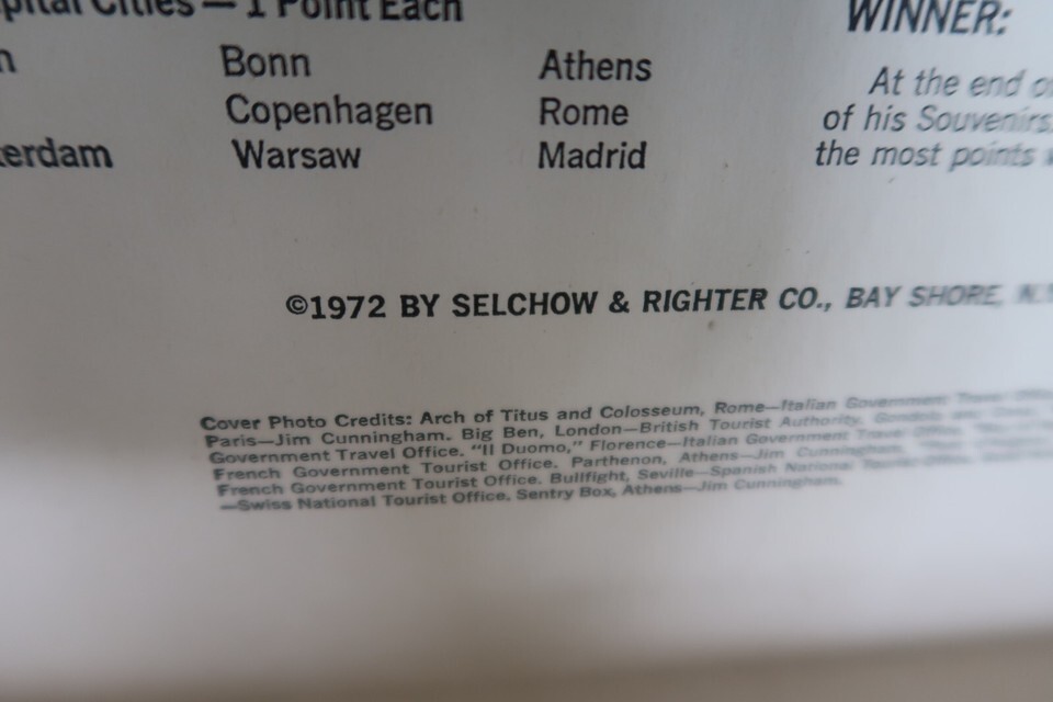 Cooks Tours European Travel Game Complete Selchow & Righter 1972 SelRight NY USA
