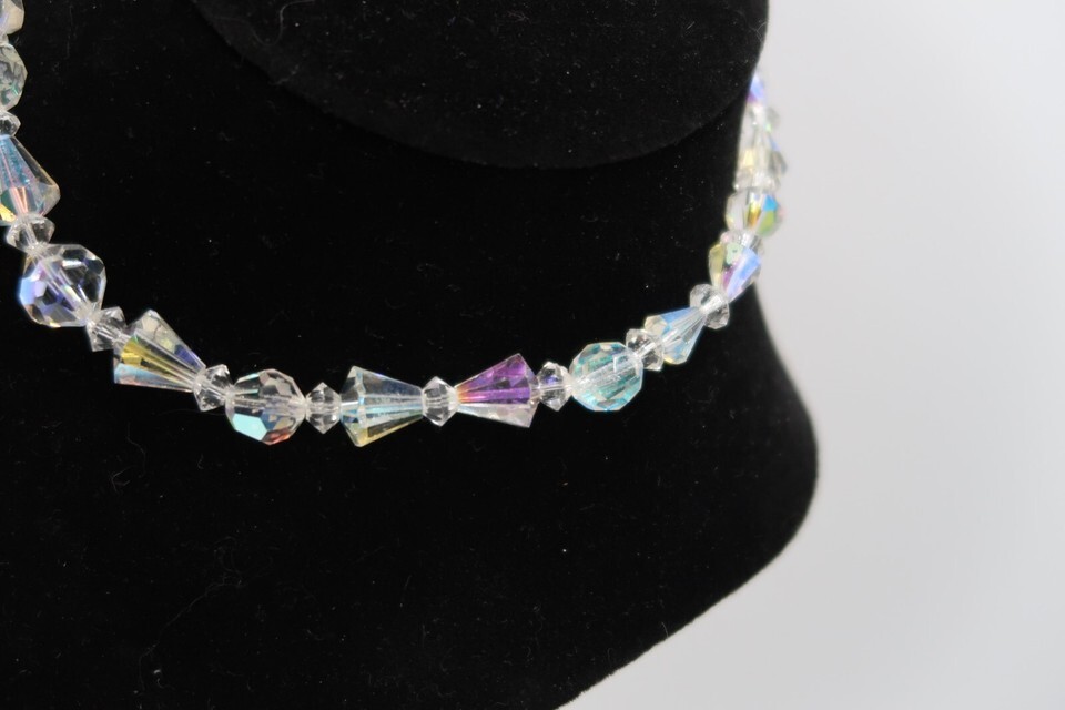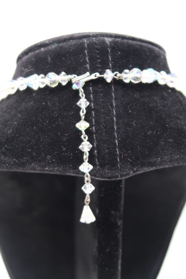 Vtg Aurora Borealis Faceted Glass Bead Art Deco Choker Necklace Silver Tone