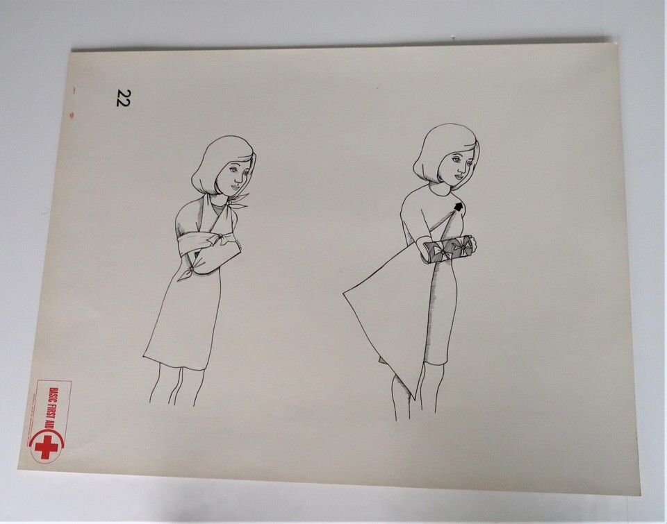 Vtg American National Red Cross Basic First Aid Drawing 2 Side Ephemera 1970 13