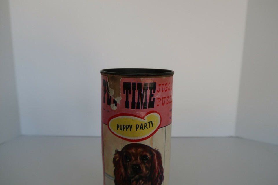 Up for sale today is this cute vintage puppy party puzzle. The puzzle itself is in very good condition for the age, and has been counted to ensure it is complete. The box is in fair but not great shape, as shown in the pictures.