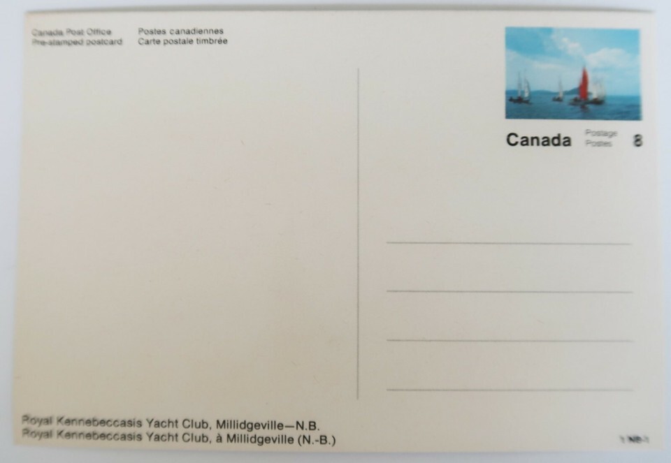 Canada Post Office Pre Stamped Postcard 8¢ Royal Kennebeccasis Yacht Club, NB