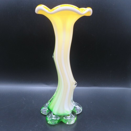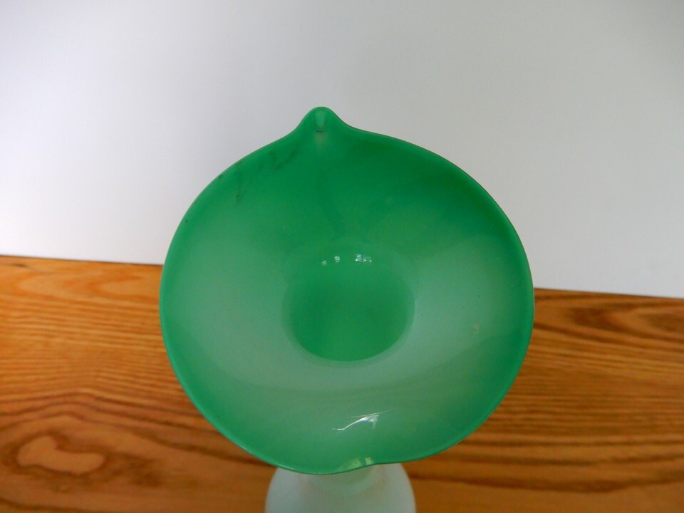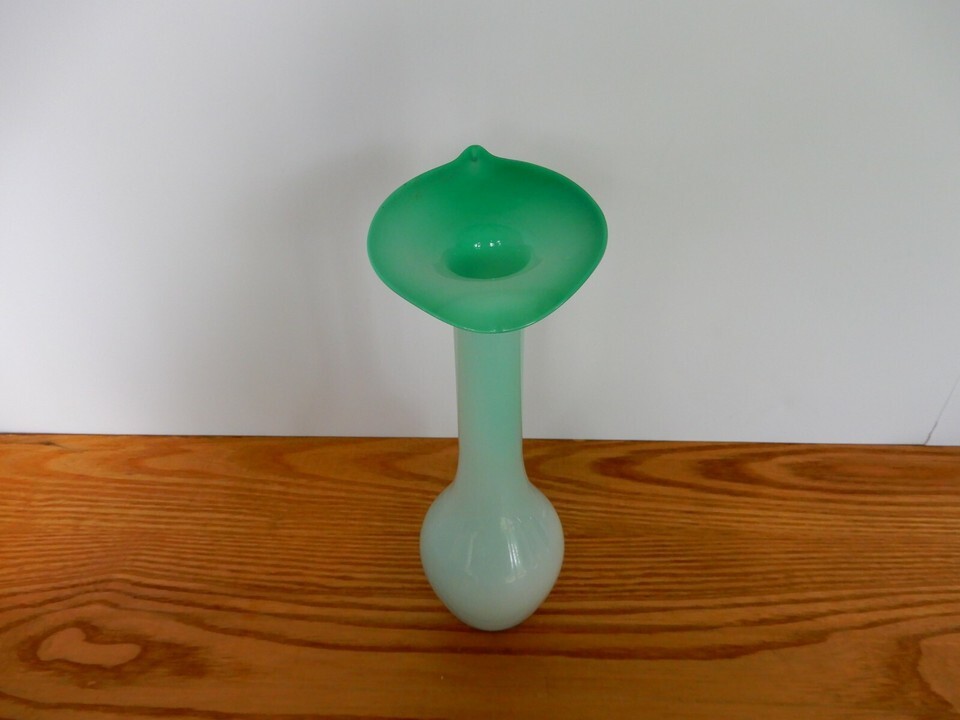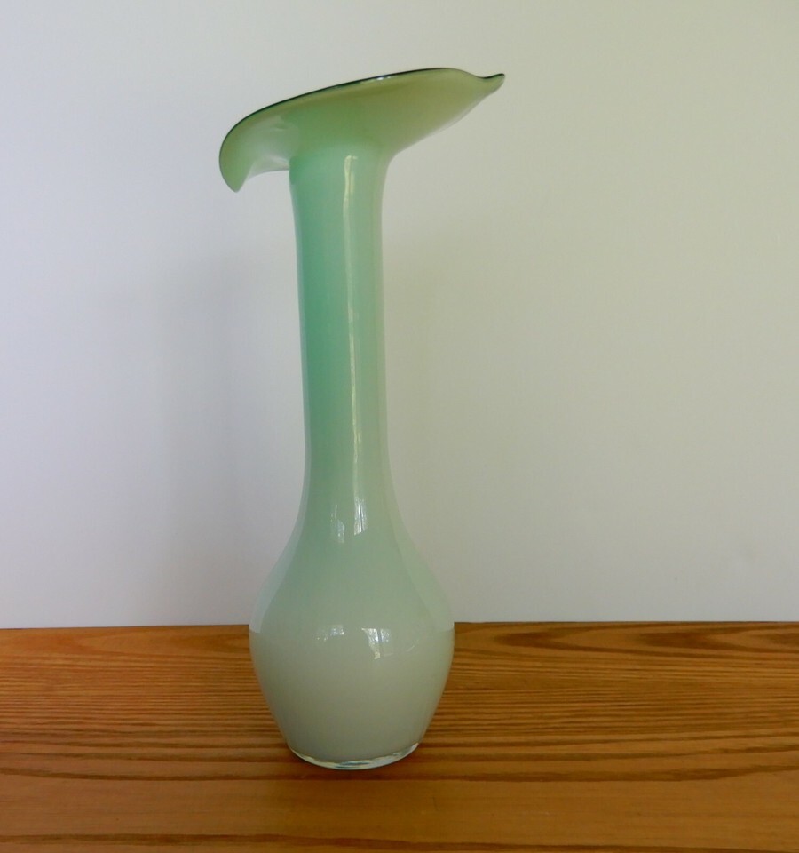 Beautiful vintage cased art glass sea foam green abstract lily flower vase