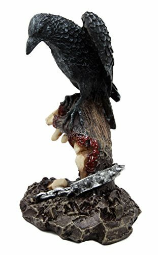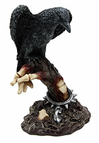 This Raven Crow Perching On Zombie Hand Sculpture is made of designer composite resin, hand painted and polished individually.