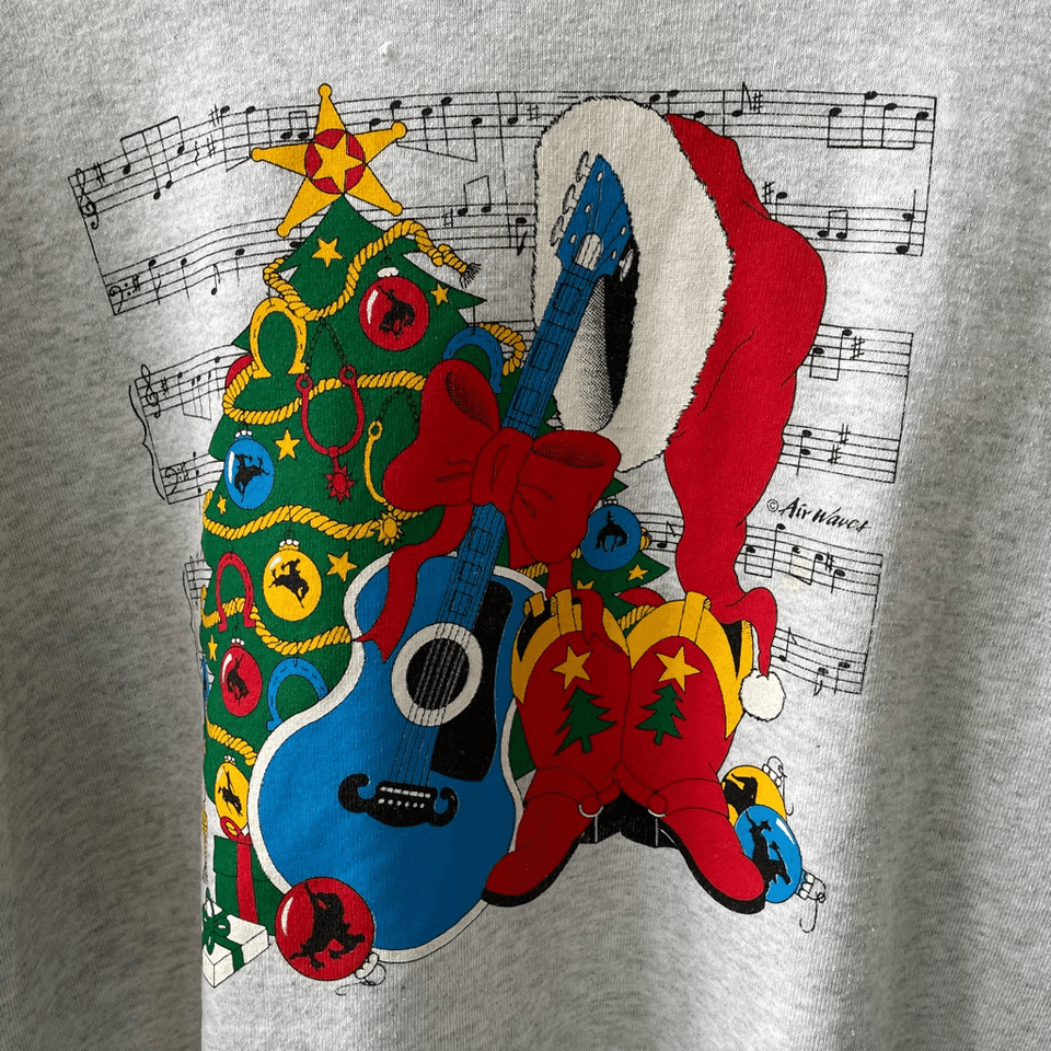Vintage 80s Cowboy Boots Blue Guitar Christmas Sweatshirt XL