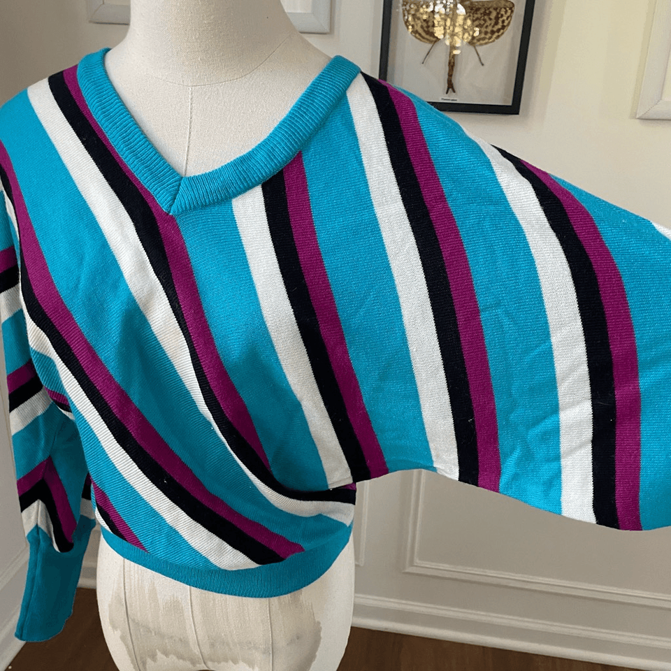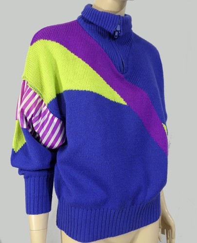 Vintage 80s Top Priority Teal Purple Dolman Sweater M