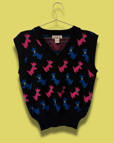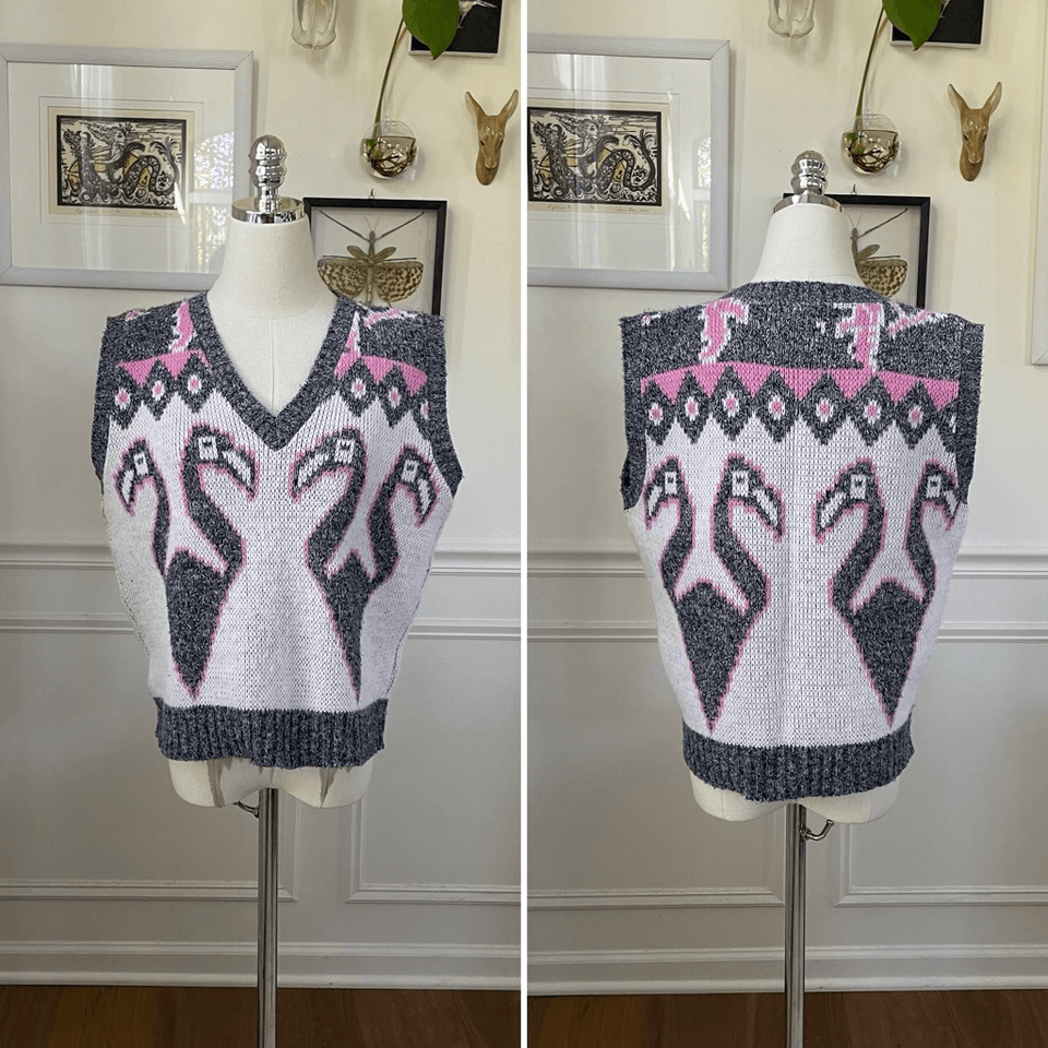 Vintage 80s Jolie Flamingo Pink Grey White Sweater Vest M