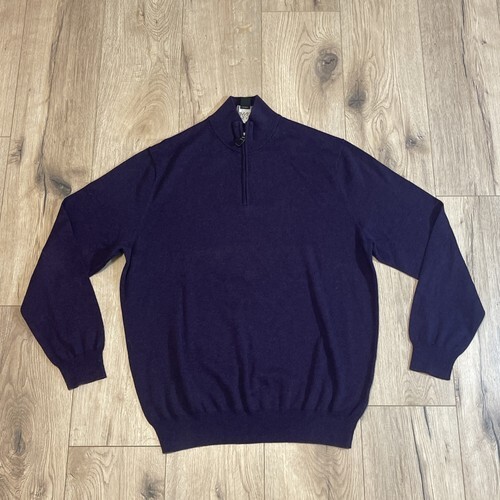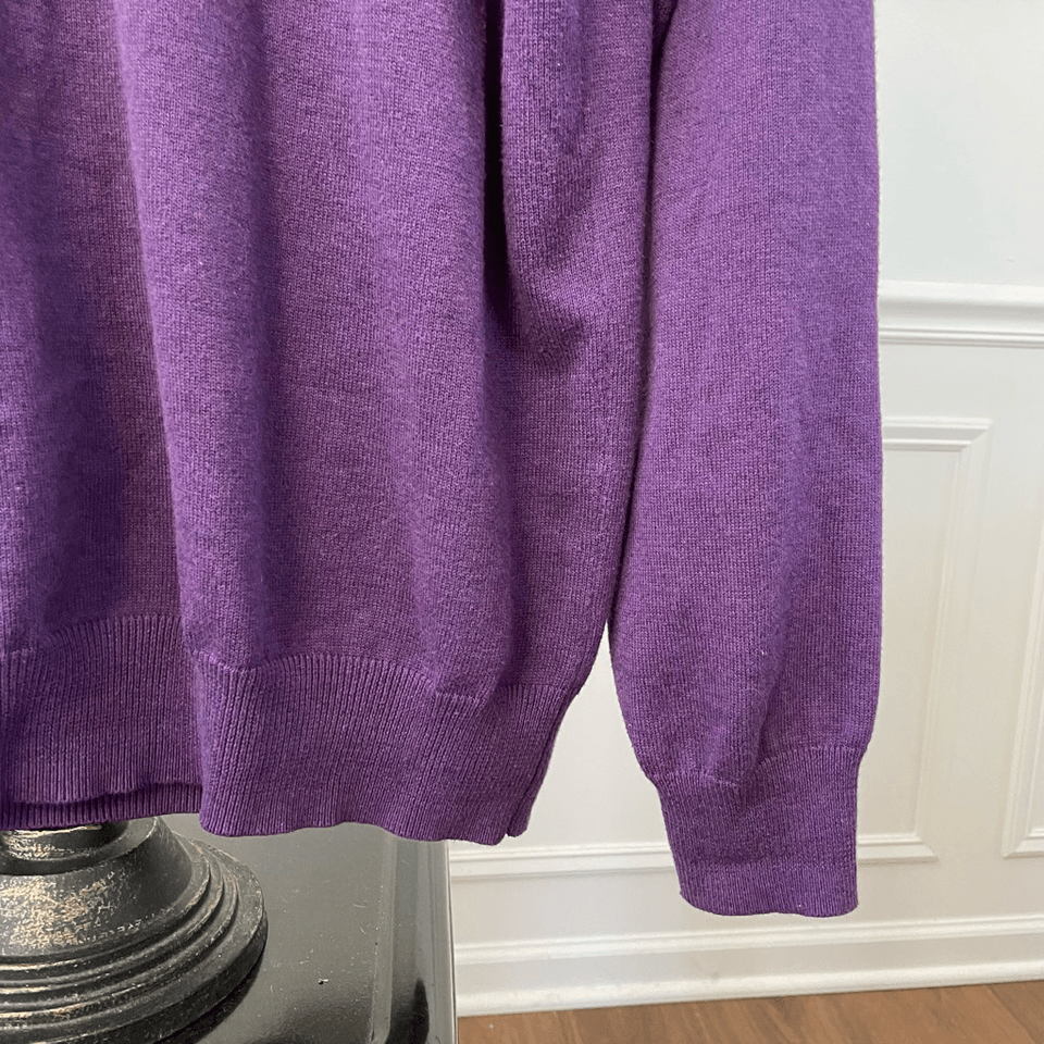 Jos A Bank jewel tone regal shade of purple 100% Pima cotton knit quarter zip lightweight sweater. No holes or stains or pulls. Laying flat measures 28 inches shoulder to hem and 23 inches armpit to armpit.