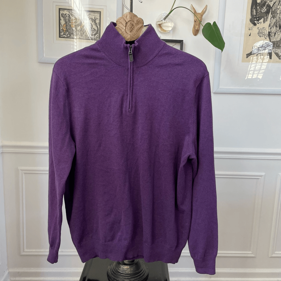 Jos A Bank Purple Pima Cotton Knit 1/4 Zip Lightweight Sweater L
