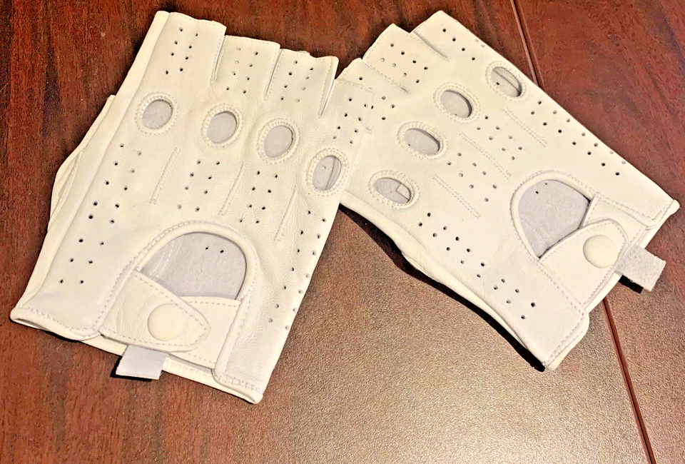 Men Driving Gloves Half finger Finger Less Texting Touch Screen White Size Large