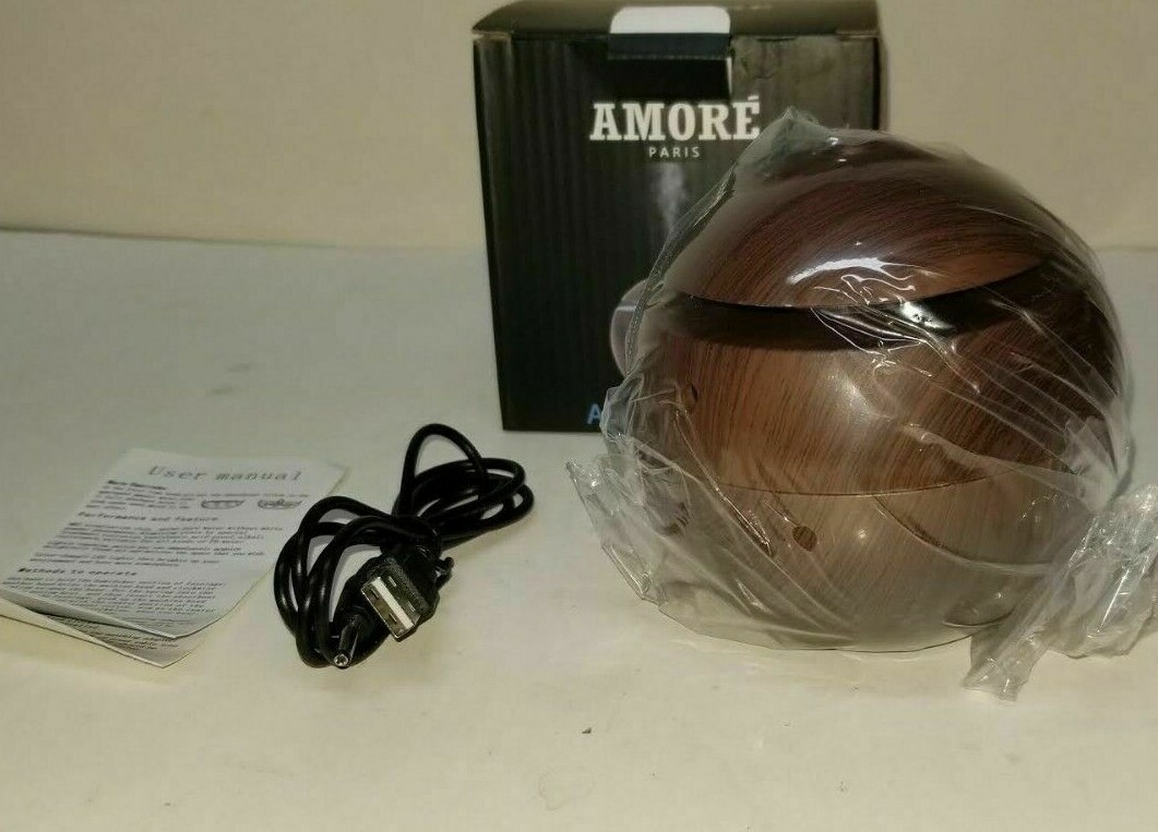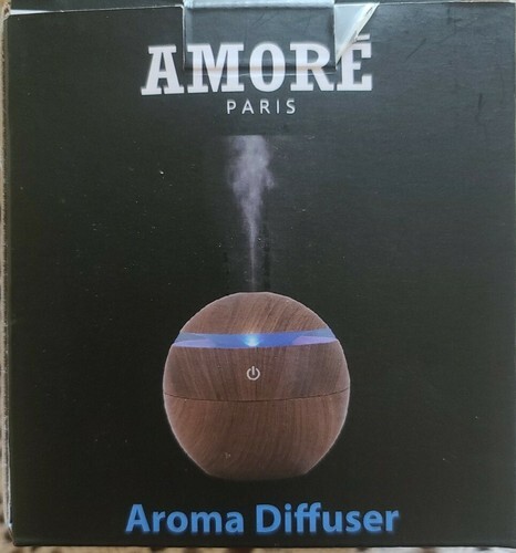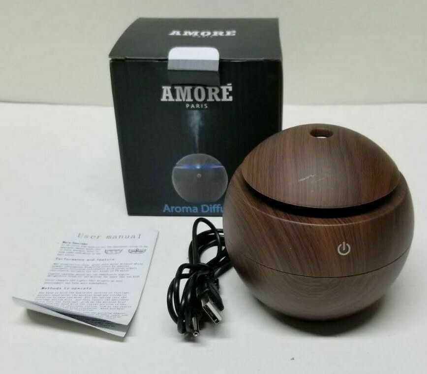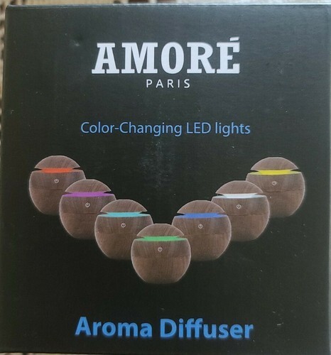 Amore Paris Aroma Diffuser ~ Brown Wood Grain ~ Color Changing ~ USB Powered