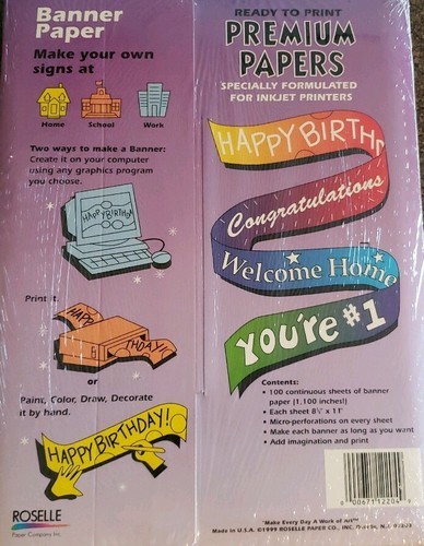 Roselle Paper Co. ~ Ready to Print ~ Banner Paper ~ 60 Continuous Sheets ~ New