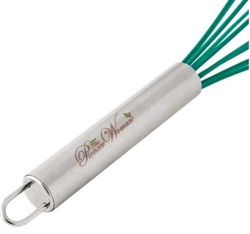 One (1) Whisk ~ measures approximately 10.43" long x 2.36" wide ~ stainless steel handle with Pioneer Woman Signature a green silicone head