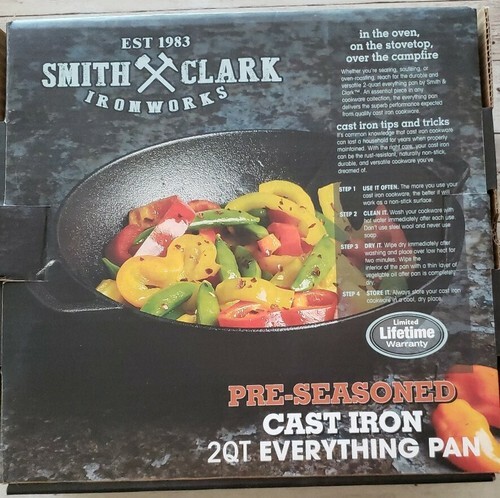 Smith Clark Ironworks ~ Pre-Seasoned ~ Cast Iron ~ 2 Quart ~ Everything Pan