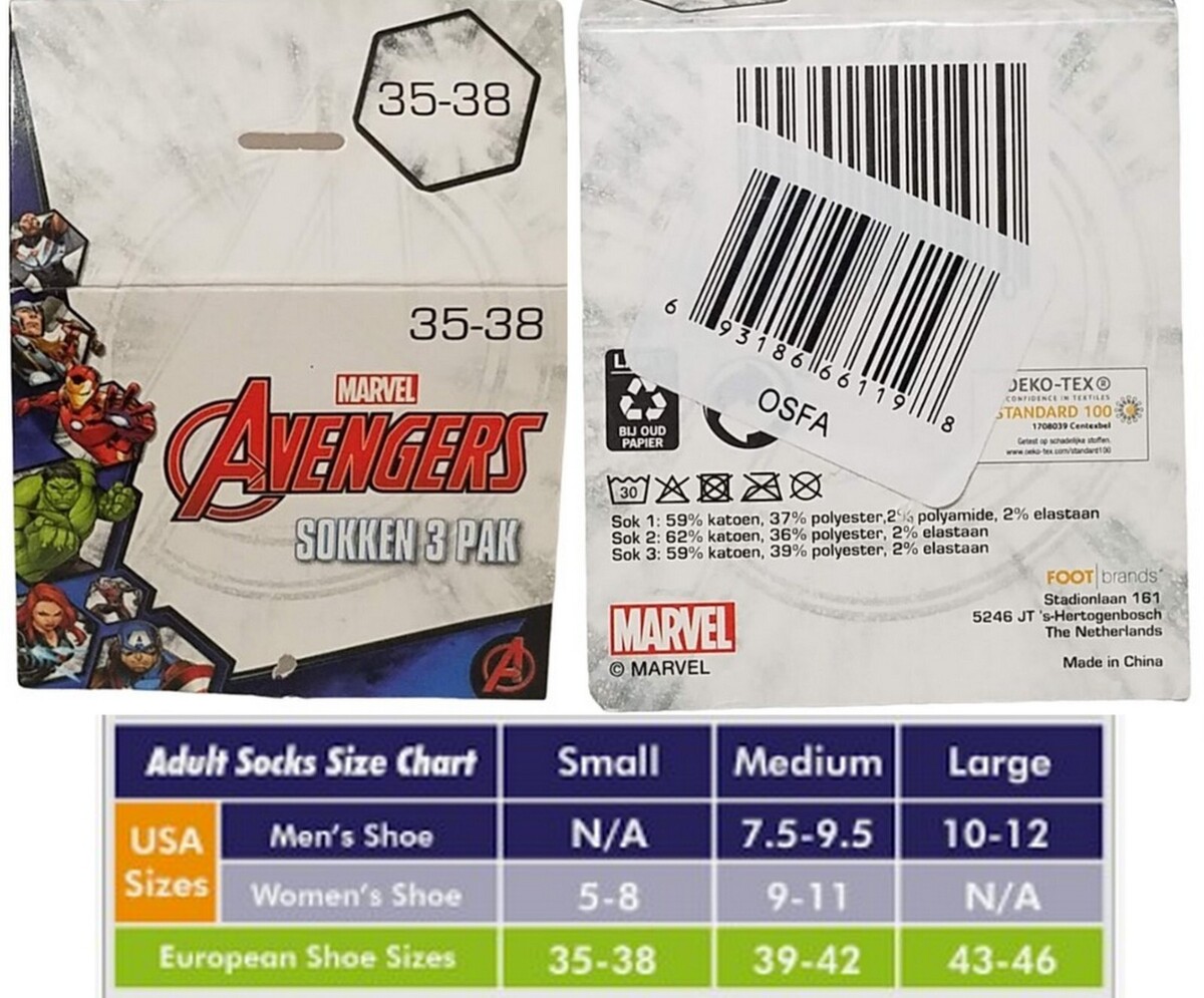 Made of polyester and elastane, these socks are durable and comfortable to wear, and come in a solid pattern with multi-color graphics featuring the iconic superheroes.