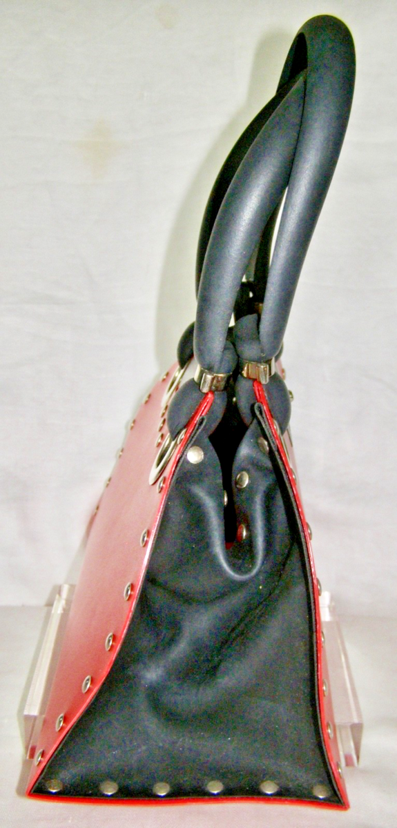 AXIS, PARIS, DESIGN SANDRINE LEONARD HANDBAG- SANDRINE STUDDED SATCHEL, RED+BLK