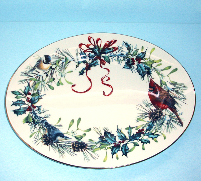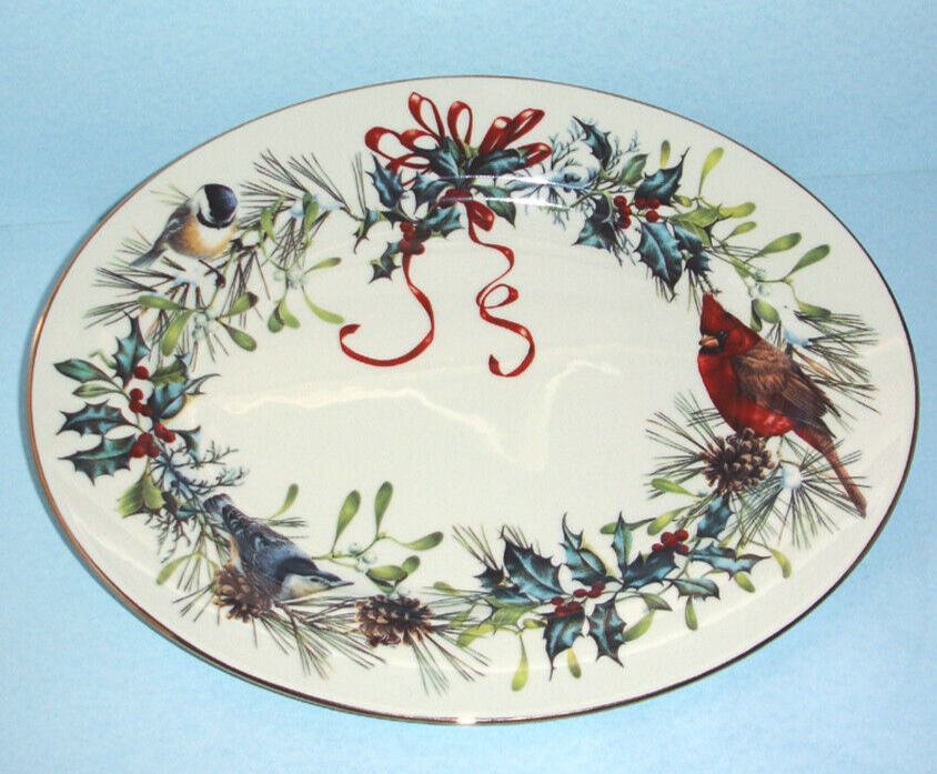 Lenox Winter Greetings Oval Serving Platter 13" Cardinal/Greenery USA New No Box