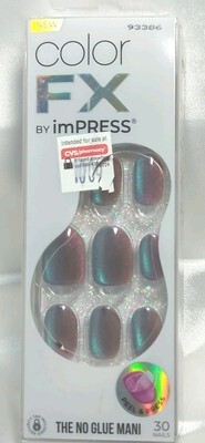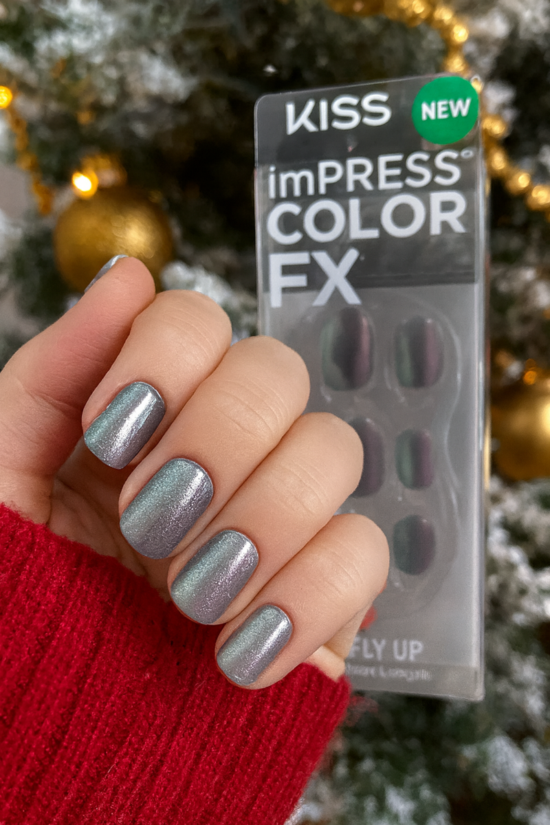 Fly Up KISS imPRESS Color FX No Glue Press-On Nails Silver Short holographic