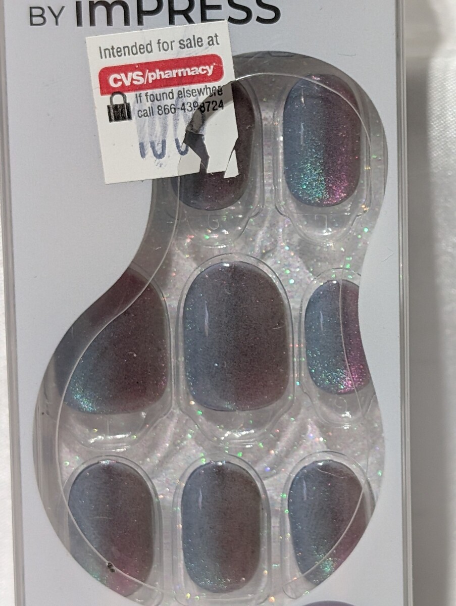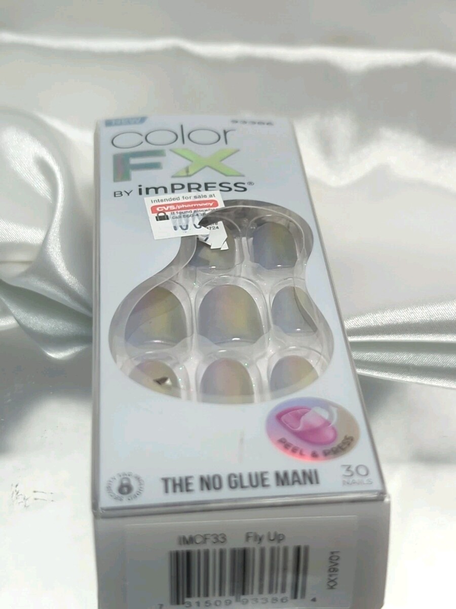 KISS imPRESS Color FX No Glue Press-On Nails ?Fly Up? Silver Short Length ? NEW / SEALED