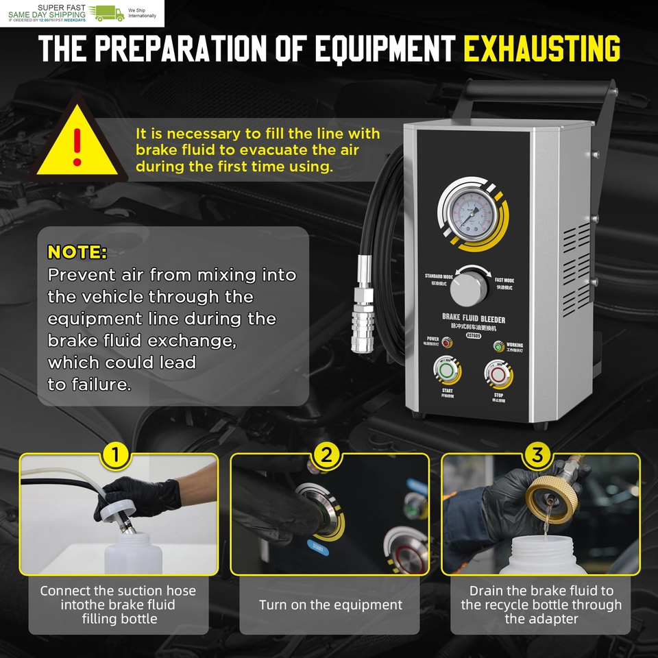 Brake Bleeder Kit,110V Automotive Brake Fluid Oil Exchanger Machine,Brake Oil Fluid Extractor Pump,Standard Fast Mode,One-Person Operation,One Button Fluid Exchange