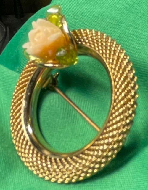 Gold Tone Brooch Mesh Pink Flower Accent Vintage