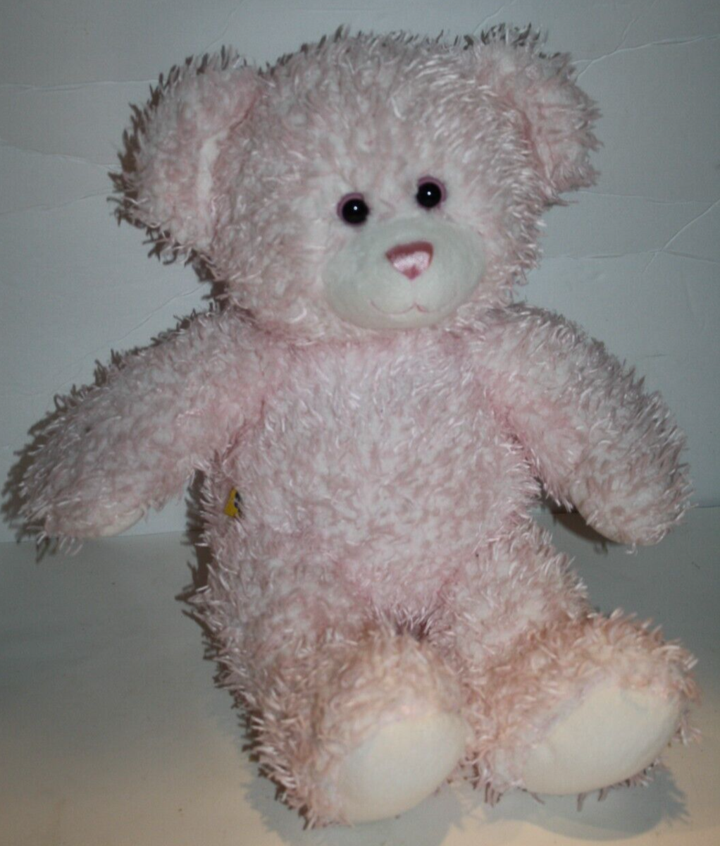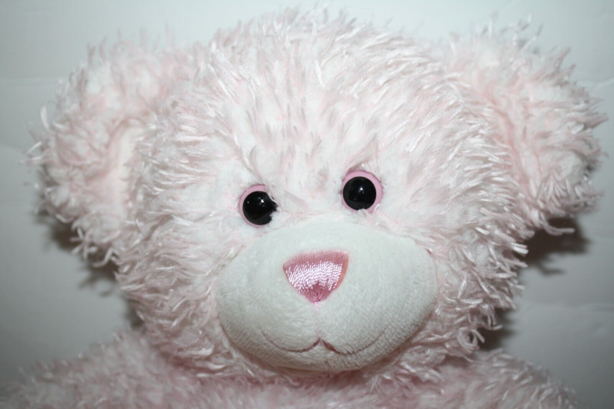 Build A Bear 17" Pink Eyes White Plush Fluffy Soft Toy Girl Stuffed Animal BABW