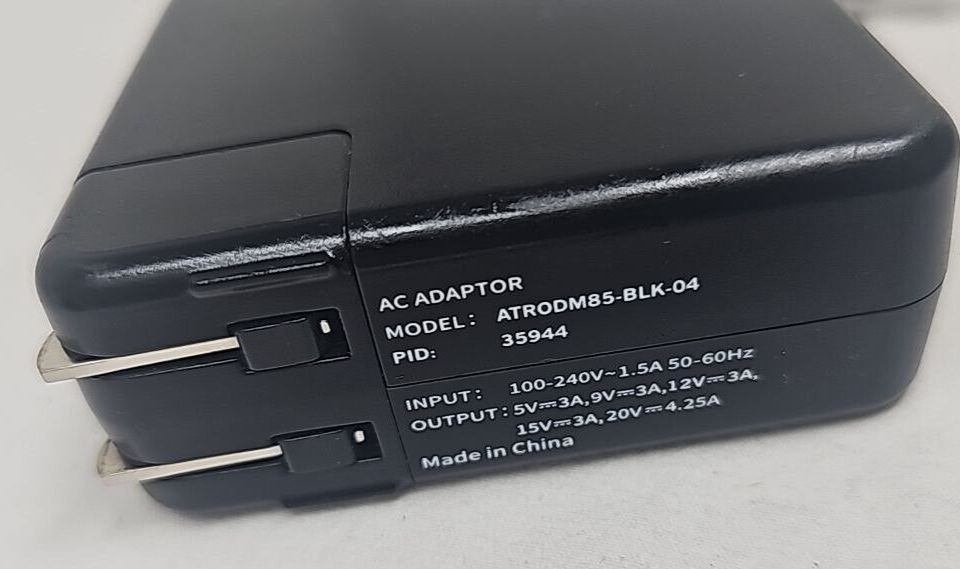 ? USB-C Power Delivery (PD) adapter with up to 85 W output for fast charging laptops and devices